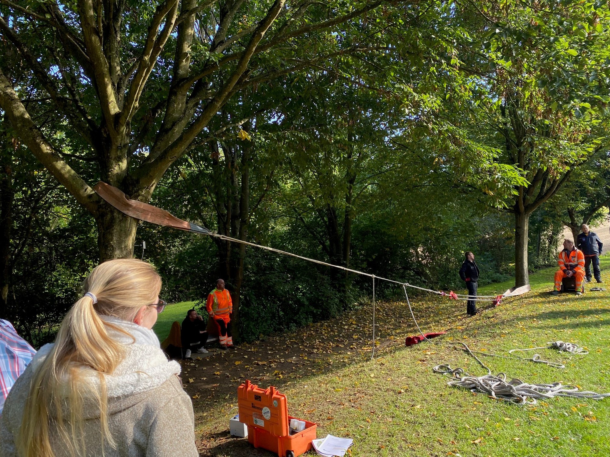 Im praktischen Teil des Seminars lernten die Teilnehmer die korrekte visuelle Beurteilung von Bäumen in verschiedenen Alters- und Gesundheitszuständen. Besonderes Augenmerk lag dabei auf potenziellen Gefahrenmerkmalen wie Totholz, V-Zwieseln oder Pilzbefall. Neben der Kronen- und Stammbegutachtung wurde auch der Wurzelbereich betrachtet – inklusive der Frage, wann eine weitergehende fachliche Untersuchung, beispielsweise nach einem Sturm, notwendig ist. Ein weiteres Highlight war die Demonstration eines Zugversuchs an einem gesunden Baum. Dabei wird durch kontrolliertes Ziehen mittels Seilen und Sensoren die Standsicherheit des Baumes überprüft – eine Maßnahme, die insbesondere bei besonders wertvollen oder historisch bedeutsamen Bäumen eingesetzt wird.