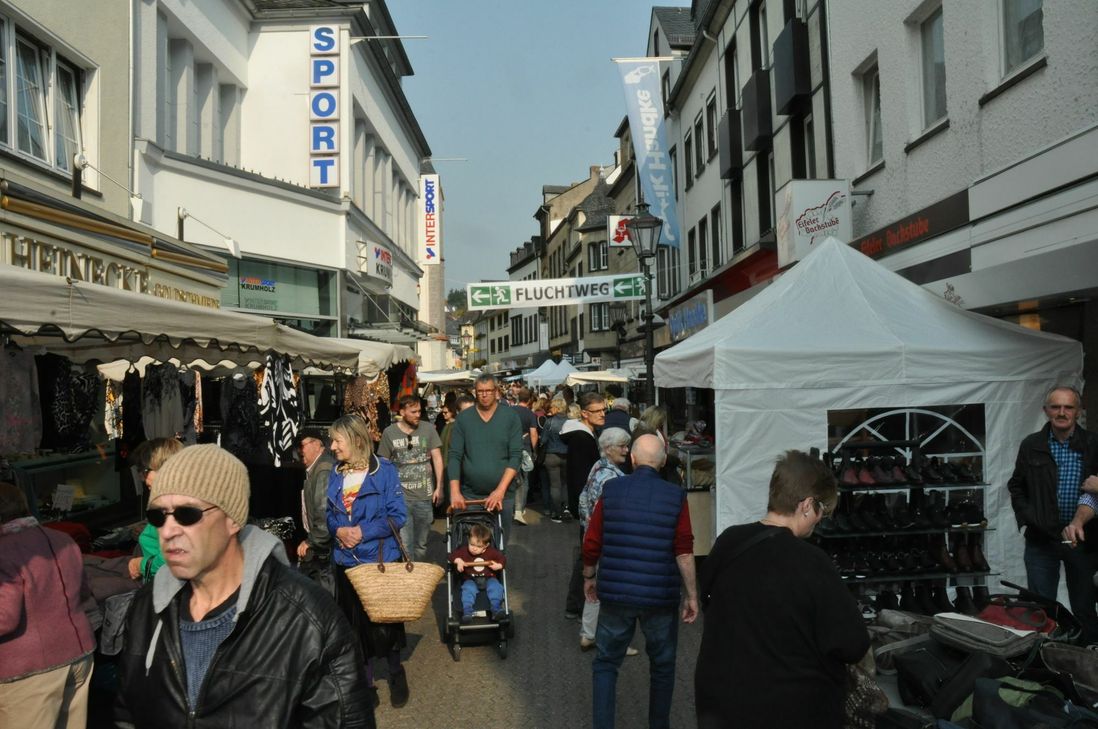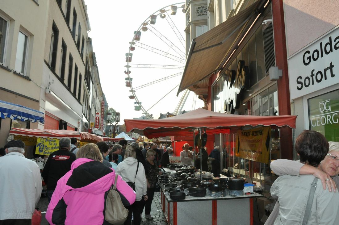 Auf dem Krammarkt, der während der neun Tage Lukasmarkt fest in der Bäckerstraße beheimatet ist, bieten über 50 Händler alles vom Textilbereich über Haushaltsartikel und Schmuck bis hin zu Gewürzen und Putzmitteln an. Der Markt öffnet zusammen mit dem Vergnügungsbereich und schließt jeweils um 19 Uhr. An den traditionellen Krammarkt-Tagen, dem heutigen Dienstag und am Mittwoch, 18. Oktober, ab jeweils 8 Uhr, locken zusätzlich rund 200 Händler in die Mayener Innenstadt und präsentieren ihre Waren. Angebote wird alles, was das Herz begehrt. Für jeden findet sich das Passende und das zu Schnäppchenpreisen. Das gute Wetter in diesem Jahr lädt zum gemütlichen Stöbern und Kaufen ein und lässt auch die Händler auf ein gutes Geschäft hoffen. Fotos: Liebig