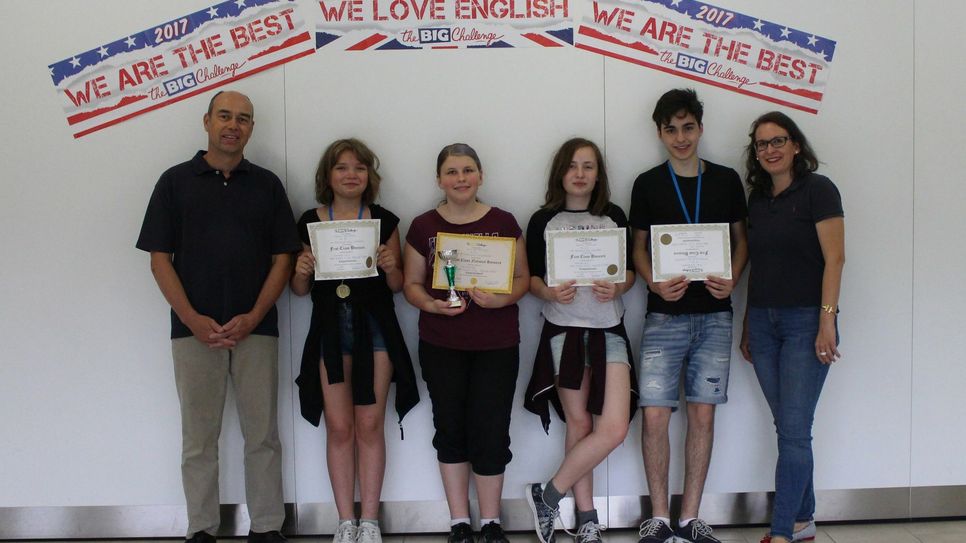 Schulbeste in den Jahrgangsstufen 5 und 6 waren Lena Manthey (5b) und Kiana Bauerhenn (6d). In der Klassenstufe 8 erreichte Elena Leal Perez (8e) schulintern der ersten Platz und konnte sich landesweit auf Rang 7 platzieren. Schulsieger in der Klassenstufe 9 wurde Marc Robelsheim (9e). Landesweit landete er mit seiner Leistung auf Platz 9. Für die herausragende Leistung sorgte Jenny Krischer aus der Klasse 7e. Sie wurde Klassensiegerin und belegte auch in der landesweiten Wertung den 1. Platz. Bei der schulinternen Siegerehrung gratulierten Schulleiter Dieter Möntenich und Englischlehrerin Claudia Kugler-Müller, die für die Vorbereitung und Durchführung des Wettbewerbes verantwortlich war, allen Siegern zu ihrer Leistung. Foto: Realschule plus Untermosel www.rsplus-untermosel.de