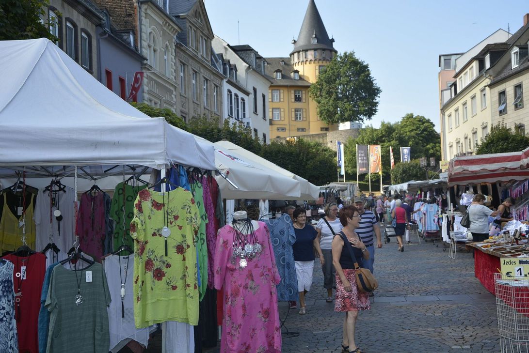 Luftig, leichte Sommerkleidung war der Renner auf dem Laurentiusmarkt. Viel Händler boten diese Produkte zum Sommerendspurt an und trafen damit den Geschmack des Publikums. Aber auch viele andere Waren - von nützlichen Helfern für den Haushalt bis zu Deko- und Schmuckideen - waren zu finden. Bis zum Spätnachmittag kann der Markt in der Mayener Innenstadt noch besucht werden. Foto: Kruft