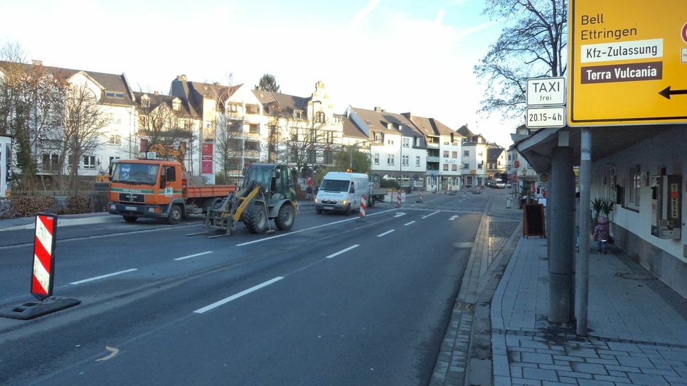 Die letzte von vier Bauphasen des diesjährigen Ausbaus des Habsburgrings in Mayen ist gestartet. Nach wie vor kann aus Richtung Brückentor kommend einspurig Richtung Obertor gefahren werden. Lediglich die Fahrbahnseite hat dabei gewechselt.