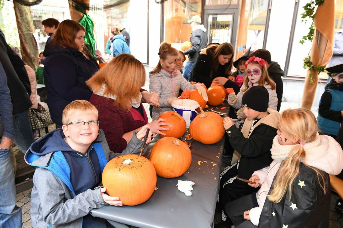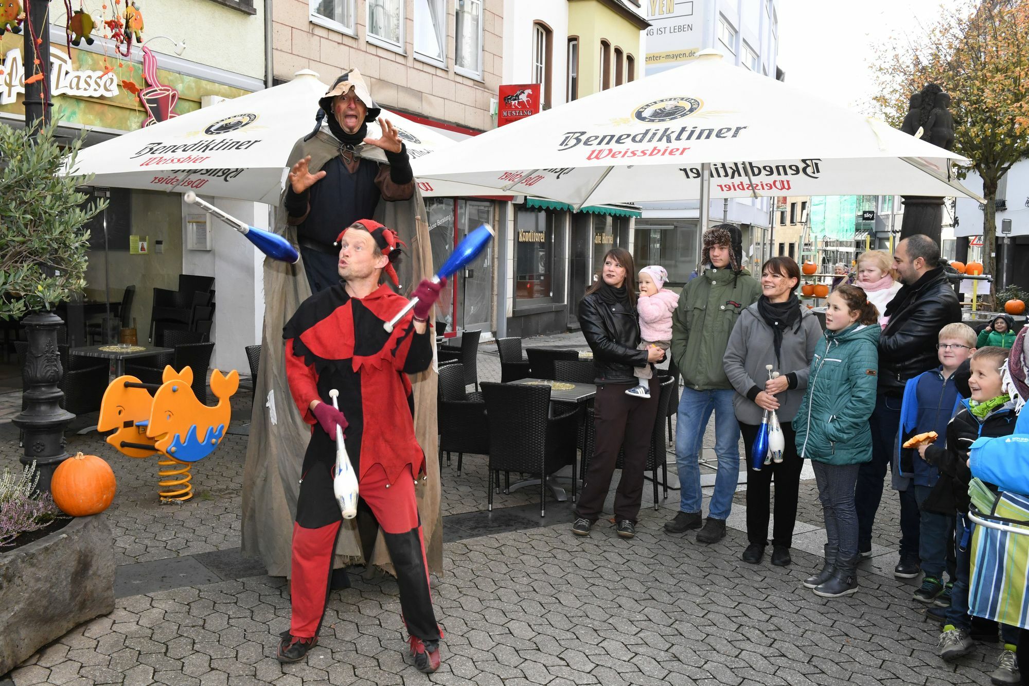 In der Beliebtheitsskala stand das Kürbisschnitzen in der Brückenstraße ganz vorne bei den jungen Künstlern. So war es nicht verwunderlich, dass die 250 Kürbisse schnell neue Besitzer gefunden hatten. Die Schnitzarbeiten zeigten, mit wie viel Kreativität die Jungen und Mädchen ans Werk gingen. So viel Begeisterung muss belohnt werden. Alle Schnitzer erhielten einen Gutschein, gesponsert von Corso Kino und WochenSpiegel, und dürfen sich auf einen exklusiven Kinobesuch »Hotel Transsilvanien 3« am Samstag, 3. November, 11 Uhr, freuen. Auch die anderen Angebote mit Gauklern, Mitmachaktionen und »magischen« Köstlichkeiten fanden ihre Fans. Die Mitglieder der Brückengemeinschaft sorgten mit ihren Dekorationen für das passende Ambiente. Aber auch auf dem Marktplatz und in der Burg wurde ein abwechslungsreiches Programm geboten. Damit war das Festival der Magier und Hexen erneut ein Highlight im Mayener Veranstaltungskalender. Fotos: Walz