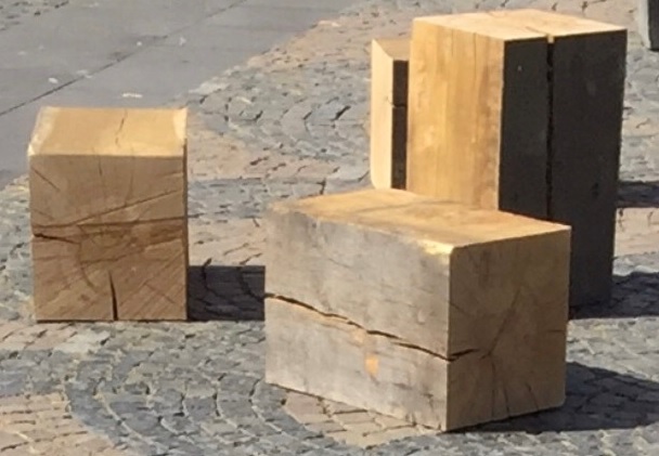 Der Holzklotz diente als Sitzgelegenheit für Besucher der Innenstadt. Sachdienliche Hinweise an die Polizei unter: 0 26 51 / 80 10. Foto: Polizei Mayen
