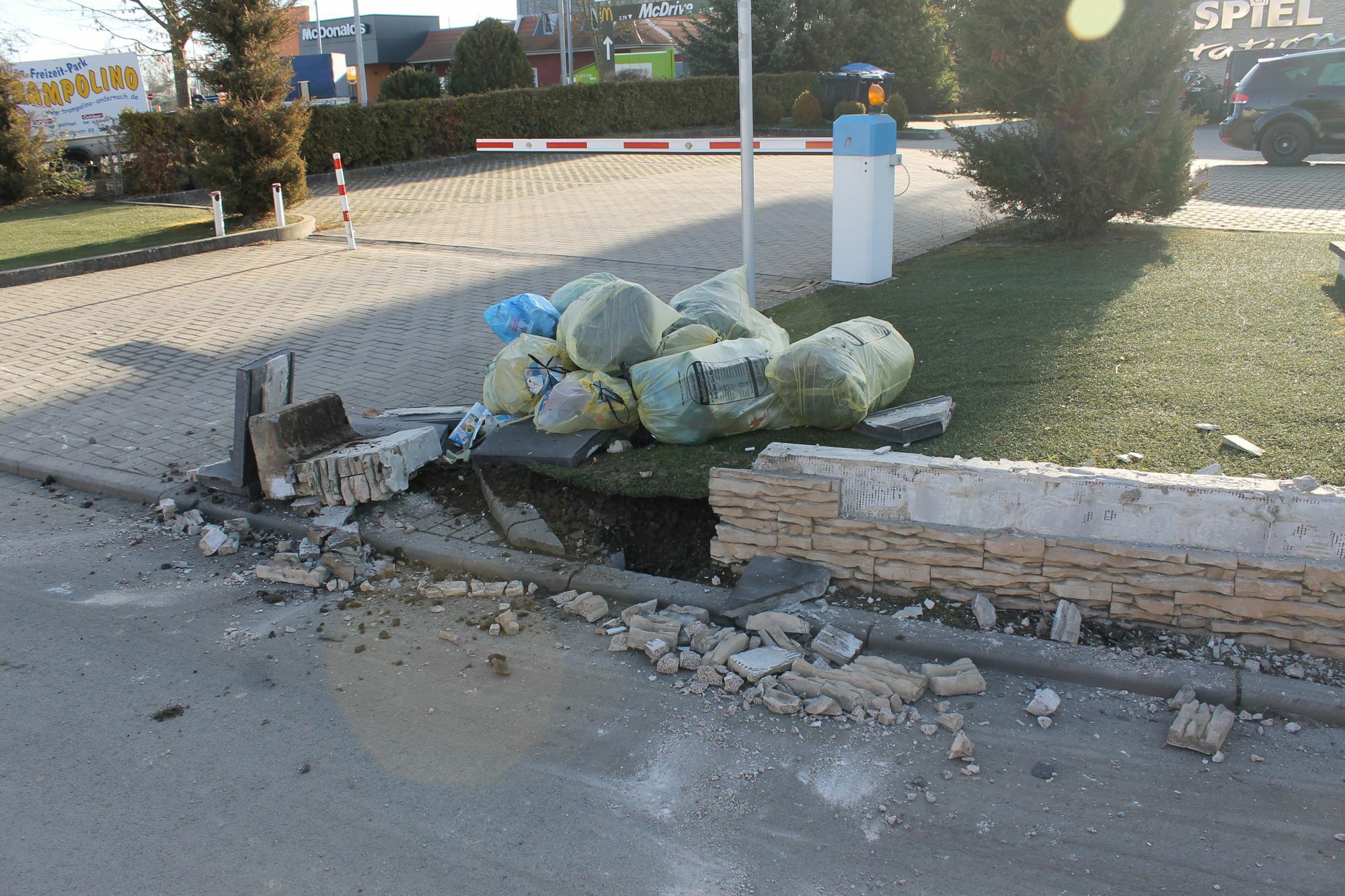 Die Mauer vor der dortigen "Spielstation" wurde zwischen 2 und 5.15 Uhr umgefahren. Der Unfallverursacher entfernte sich anschließend unerlaubt von der Unfallstelle. Hinweise an die Polizei in Mayen unter: 0 26 51 / 80 10. Foto: Polizei
