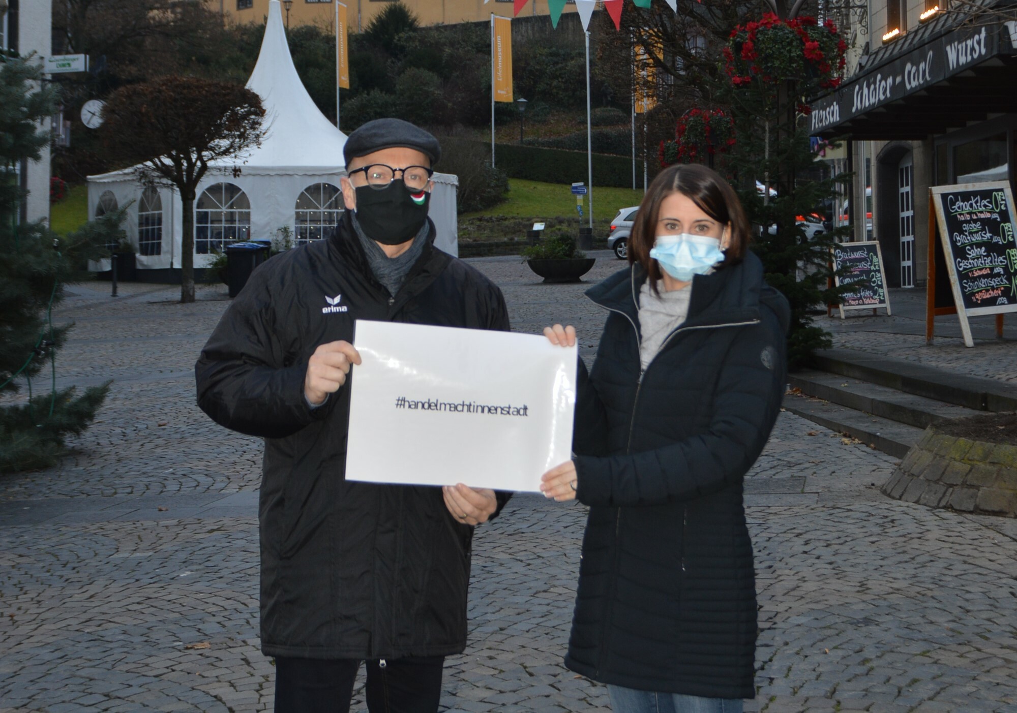 Der Handelsverband möchte damit dem Handel vor Ort noch mehr Stimme und Gesicht verleihen, um der Politik zu zeigen, dass es in den derzeitigen Diskussionen nicht nur um Zahlen und gute Argumente geht, sondern um Menschen mit ihrem Mut und Engagement vor Ort. Daher haben auch Oberbürgermeister Dirk Meid und Wirtschaftsförderin Christina Wolff ein Foto mit dem Hashtag gemacht, welches nun auf der Homepage des Handelsverbandes und anderen Onlinemedien publiziert wird. "Wir möchten mit dieser Aktion den Einzelhandel vor Ort unterstützen und ein Zeichen setzen, dass wir uns mit unseren Gewerbetreibenden identifizieren und ihre Sorgen und Nöte teilen", so Oberbürgermeister Dirk Meid und Christina Wolff unisono. Foto: Stadt Mayen www.hv-mrp.de