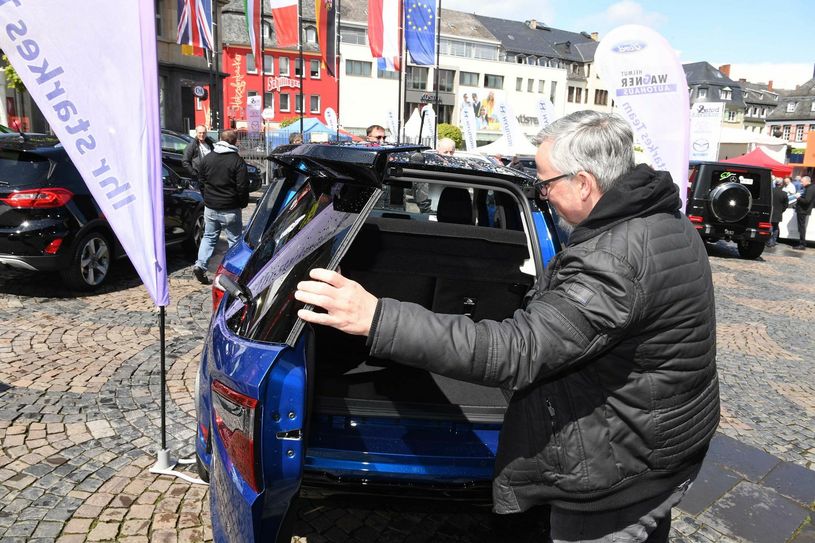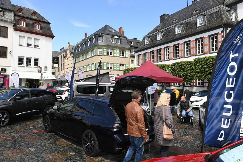 Das Schaulaufen der neuesten Autos auf dem Marktplatz und in den angrenzenden Straßen geht weiter. Programm am Sonntag, 5. Mai: Exklusive Snacks und Getränke vom Royal Party Service Live-Musik auf der Bühne mit »The Acoustics"»aus Koblenz • Kinderprogramm mit Clown Peppino und seinem Freund Archibald. Fitness-Shows vom Fit-Up Mayen 13 bis 18 Uhr: verkaufsoffener Sonntag in Mayen Fotos: Walz