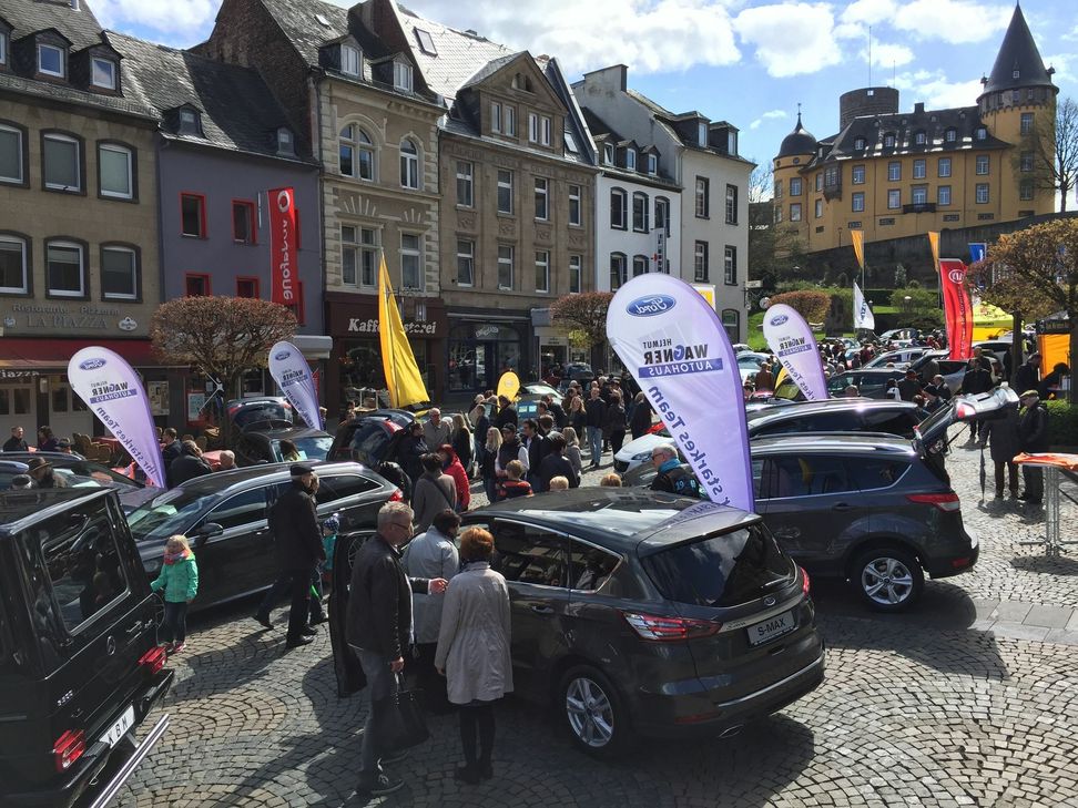 Auf dem Marktplatz und in den angrenzenden Straßen in der Fußgängerzone sind nicht nur leidenschaftliche Autofahrer eingeladen zum Schauen und Probesitzen. Wer sich mit dem Gedanken trägt, einen neuen fahrbaren Untersatz in der nächsten Zeit anzuschaffen oder sich nur einfach mal informieren möchte, ist hier an der richtigen Adresse. Denn der Autokauf stellt den Interessierten vor die berechtigte Frage. „Kaufe ich mir einen Benziner, ein Hybrid, ein Gas- oder Elekroauto oder gar noch einen Diesel? Mitarbeiter der ausstellenden Autohäuser stehen für alle Fragen der Besucherinnen und Besucher an beiden Ausstellungstagen selbstverständlich bereit. Auch wenn an beiden Tagen, Samstag und Sonntag, die Fahrzeuge im Mittelpunkt stehen, wird ein attraktives Programm rundherum geboten. Eröffnet wird die Autoschau am Samstag, 4. Mai, um 11 Uhr von Oberbürgermeister Wolfgang Treis im Beisein der „Profis" auf der Bühne. Für Fitness-Fans präsentiert Maggy Kukulski vom „Fit-Up"-Fitnesscenter mit ihrem Team einige Vorführungen, die einfach Lust auf Bewegung machen. Für die Unterhaltung der jüngsten Besucher sorgt Bauchredner Clown Peppino mit seinem beliebten Freund Archibald. Für musikalische Unterhaltung wird ebenfalls gesorgt. Live-Musik gibt es am Samstag mit der Band „Fossdoll" aus Düsseldorf. Am Sonntag sorgt die Band „Acoustics" aus Koblenz für die richtigen musikalischen Klänge. Auch das leibliche Wohl darf nicht zu kurz kommen: Dafür zeichnet der „Royal Party Service" verantwortlich. Und last but not least: Am 5. Mai ist der verkaufsoffene Sonntag angesagt. Von 13 bis 18 Uhr öffnen die Geschäfte ihre Pforten. Foto: Archiv