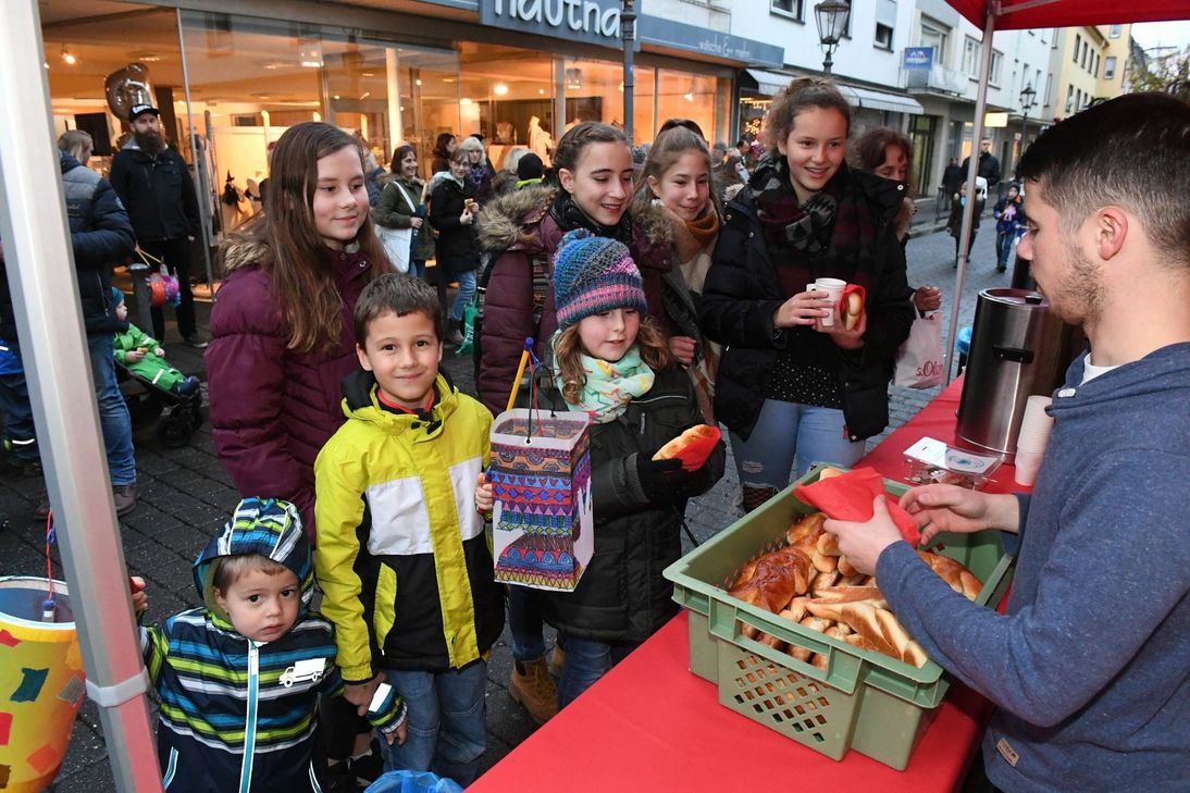 »Laterne, Laterne,...«: So ziehen jedes Jahr um den 11. November herum Scharen von Kindern mit bunten Laternen durch die dunklen Straßen und singen Martins- und Laternenlieder. In den Gemeinden der Region begannen die Umzüge schon am 2. November und enden am 17. November. In Mayen ist es am Freitag, 16. November, soweit. Doch, bevor der große Umzug nach dem Gottesdienst startet, sollte der Weg der großen und kleinen Mayener zum WochenSpiegel in die Göbelstraße führen. Wie es schon seit vielen Jahren ein guter Brauch ist, werden hier von dem WochenSpiegel-Team wieder leckerere Meerdesditze - aus den Backstuben der besten Bäcker aus der Region - mit der Aktionsgemeinschaft Göbelstraße verschenkt. 1.000 Stück dieser Backware warten darauf, verzehrt zu werden. Wer dazu noch einen Früchtetee oder einen Glühwein (nur für Erwachsene!) trinken möchte, der kann sich an dem Stand in der Göbelstraße ebenfalls versorgen. Es wäre schön, wenn der ein oder andere Cent oder Euro für den guten Zweck in unsere Spendenbox wandern würde. So gestärkt, dürfte es ein Leichtes sein, den Gottesdienst zu besuchen und anschließend den Weg zum Viehmarktplatz anzutreten, wo das große, weithin sichtbare Martinsfeuer abgebrannt wird. Der Kindergottesdienst beginnt um 17 Uhr in der St. Clemens-Kirche. Die Kollekte des Martins-Gottesdienstes wird in diesem Jahr auf Vorschlag von Dechant Veit der Förderschule St. Martin in Düngenheim zufließen. Es handelt sich um eine staatlich anerkannte Ersatzschule mit den Förderschwerpunkten ganzheitliche und motorische Entwicklung. Im Anschluss an den Gottesdienst wird sich der Martinszug ab circa 17.20 Uhr auf dem Marktplatz zwischen Oktogon und Marktbrunnen aufstellen. Archiv-Foto: Walz