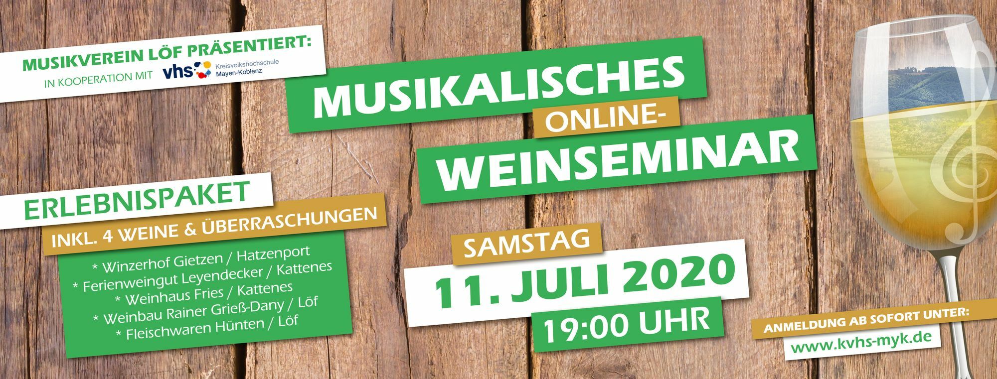 „Wein, Musik und Heimat sind immer da“ – unter diesem Motto haben sich der Musikverein Löf und die Kreisvolkshochschule Mayen-Koblenz zusammengetan und bieten gemeinsam am 11. Juli ein Musikalisches Online-Weinseminar an. Von 19 bis 21 Uhr haben die Teilnehmer die Möglichkeit, heimische Tropfen zu probieren und erhalten dabei spannende Informationen rund um den Mosel-Wein sowie Wissenswertes über die Kultur in und um den Moselort Löf. Begleitet wird das Seminar durch musikalische Beiträge des Musikvereins Löf. Das „Erlebnispaket" für die Teilnahme an der Online-Veranstaltung steht ab dem 8. Juni bei den teilnehmenden Winzern und bei der Firma Hünten zum Direktkauf für 39 Euro bereit. Auch kann das Paket online bei der Kreisvolkshochschule unter der Kursnummer 10014KVe für 45 Euro inklusive Verpackung und Versand bestellt werden. Es enthält neben dem Programm vier Flaschen erlesener Weine vom Winzerhof Gietzen (Hatzenport), vom Bio-Ferienweingut Leyendecker und aus dem Weinhaus Fries (beide Kattenes) sowie vom Weinbau Rainer Grieß-Dany (Löf). Darüber hinaus ist auch eine kleine kulinarische Köstlichkeit des Moselmetzgers „Hünten Fleischwaren“ aus Löf Teil des Pakets. Die Möglichkeit zur Anmeldung sowie weitere Informationen zur Veranstaltung gibt es im Internet unter www.kvhs-myk.de und www.musikverein-loef.de.