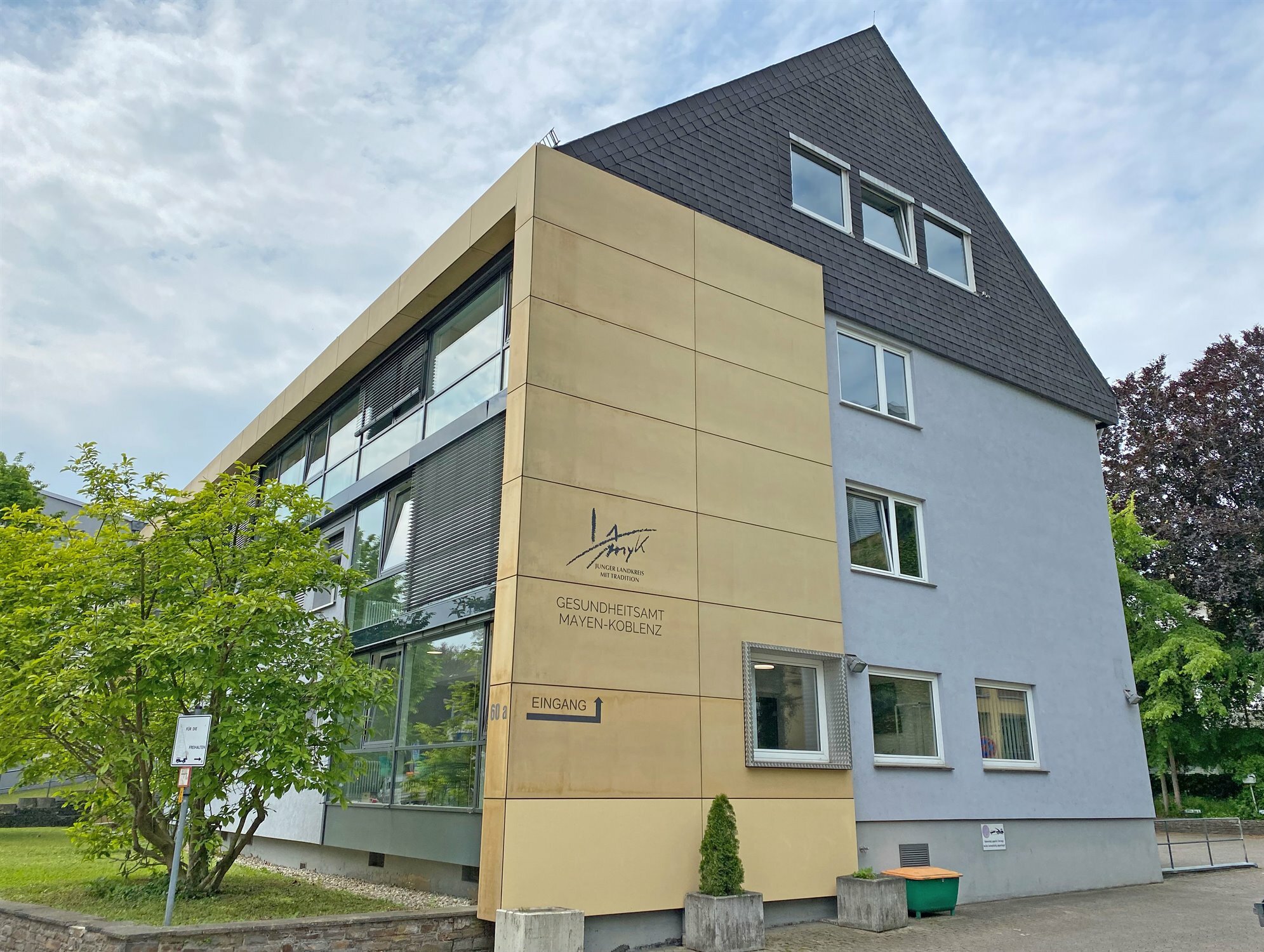 »Das neue Gebäude bietet eine perfekte Um-gebung für die Bürger und ganz besonders für unsere Mitarbeiter«,, sagte Landrat Dr. Alexander Saftig bei der Einweihung. Bis vor Kurzem war das Gesundheitsamt, das für den Landkreis Mayen-Koblenz und die Stadt Koblenz zuständig ist, noch in der Koblenzer Neversstraße beheimatet. Der bauliche Zustand des alten Gebäudes wäre seit Jahren jedoch inakzeptabel gewesen und die Atmosphäre in den veralten Räumen bedrückend. Im Erdgeschoss des dreistöckigen Gebäudes befindet sich der Besucherbereich mit Empfangsbereich, einem großen und farbenfrohen Wartezimmer mit einer Spielecke für Kinder, sowie Beratungs- und Untersuchungsräume. Um Barrierefreiheit gewährleisten zu können, wurde nachträglich ein geräumiger Aufzug in das Gebäude eingebaut.