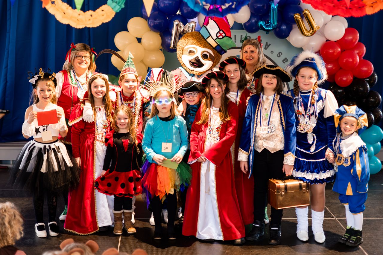 Schülerprinz David, Schülerprinzessin Ellie übernahmen mir Ihrem Gefolge die Macht der Grundschule. Mit Ihrem „Gute Laune Tanz“ brachten sie den ganzen Saal zum Beben. Natürlich ließen es sich auch Prinz Kai und Prinzessin Svenja mit ihrem Hofstaat nicht nehmen, dem proklamierten Schülerhofstaat zu gratulieren und einen Orden zu überreichen. Auch die Vereinsvorsitzenden und Mariechen der GOK Vereine machten den Kindern ihre Aufwartung.