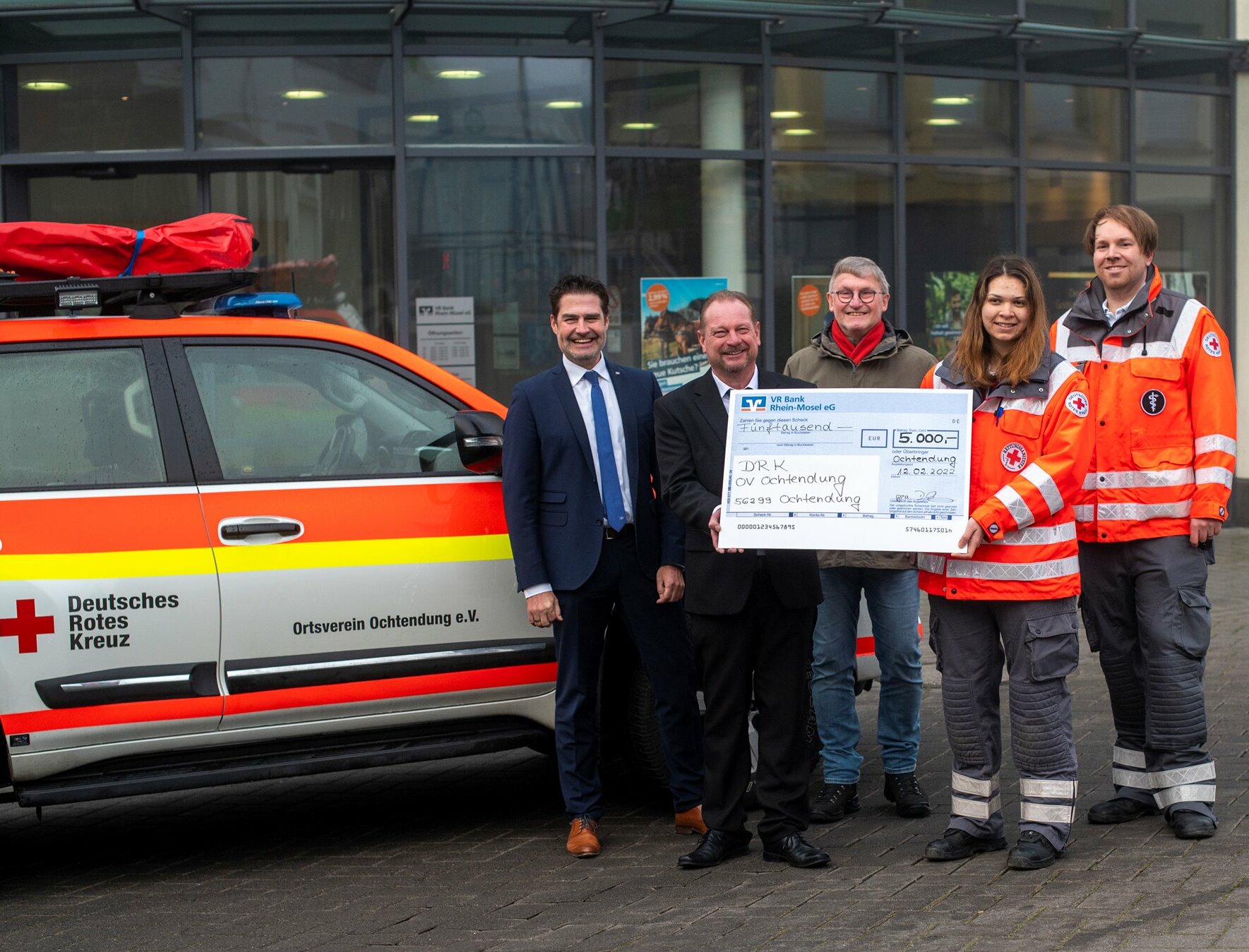 Für das Einsatzfahrzeug investierte der DRK Ortsverein rund 50.000 Euro. Dafür gab es auch externe Unterstützung. Die »VR Bank Rhein-Mosel« hat 5.000 Euro, die Ortsgemeinde Ochtendung 2.000 Euro und die Verbandsgemeinde Maifeld 500 Euro für die Anschaffung beigesteuert.