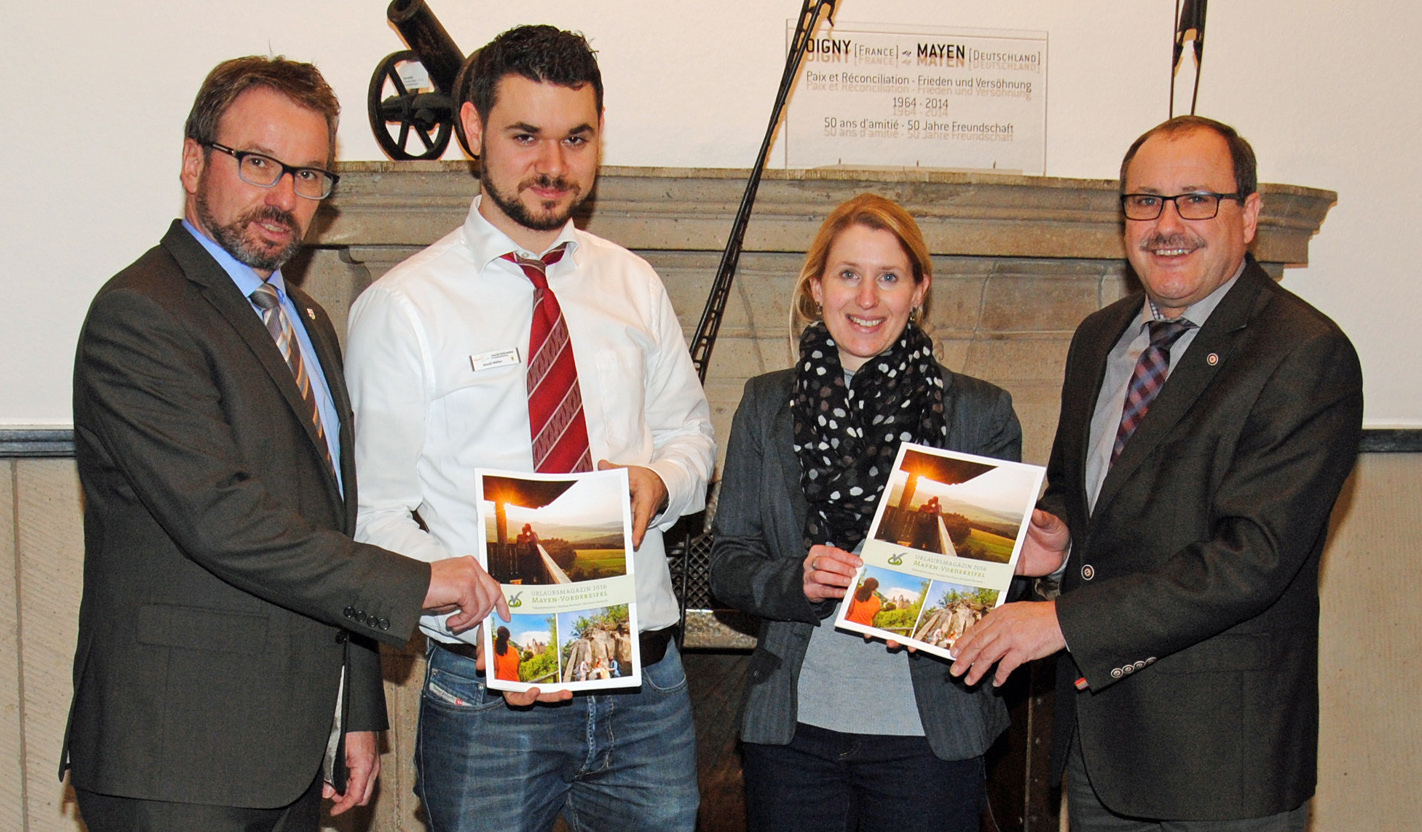 Wer in Mayen übernachtet, macht auch beispielsweise gerne einen Abstecher zum Schloss Bürresheim oder wer in Kottenheim residiert, besucht das Vulkanparkerlebniszentrum "Terra Vulcania" auf dem Mayener Grubenfeld. Großformatig bebildert wirbt die Broschüre, sowohl in deutscher Sprache als auch in Niederländisch, Französisch und Englisch für die Attraktionen in der Region. So werden beispielsweise die Traumpfade vorgestellt. Nicht fehlen darf neben dem Wanderangebot auch das Thema Radfahren. Ebenso gibt es Informationen rund um den Vulkanpark, die Sehenswürdigkeiten wie beispielsweise die Burgruine Virneburg und kulturelle Angebote wie einen Abstecher ins Eifelmuseum oder zu den Mayener Burgfestspielen. Eine Terminübersicht mit den wichtigsten Veranstaltungen im Jahresverlauf ist ebenfalls abgedruckt. Zudem informiert das Urlaubsmagazin auch über Pauschalangebote in der Region ebenso wie über Gastgeber und Übernachtungsmöglichkeiten. "Wir sind bestens für die kommende Tourismussaison gerüstet", sind sich Mayens Oberbürgermeister Wolfgang Treis und Verbandsgemeindebürgermeister Gerd Heilmann sicher. Die Broschüre kann über die jeweiligen Tourist-Informationen bezogen werden. Bildunterschrift: Foto: Jasmin Franz/Stadt Mayen www.mayenzeit.de