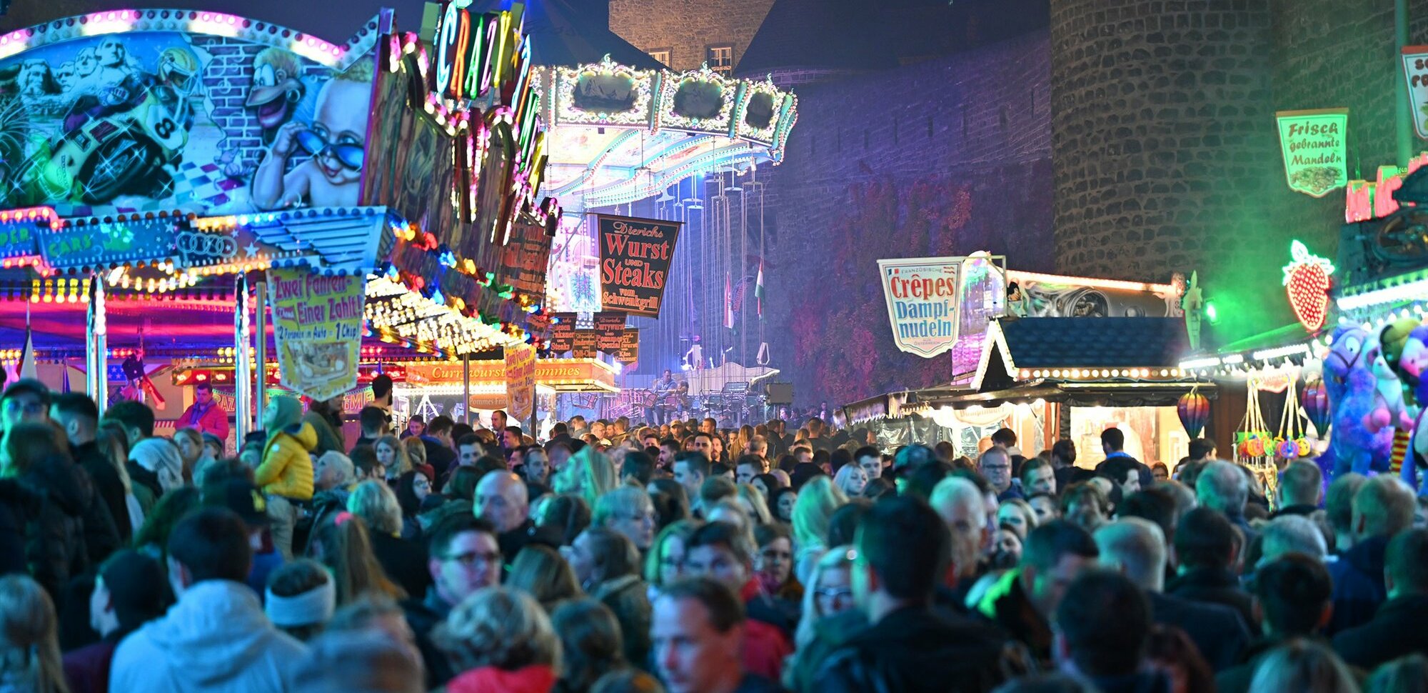 Im Jahre 1405 wurde der Name des im Laufe der Jahrhunderte traditionellen und bekanntgewordenen Lukasmarktes in Mayen geprägt. Kurfürst Werner von Falkenstein verlegte am 24. Juli 1405 die bis dahin an Marienfeiertagen abgehaltenen drei Jahrmärkte auf andere Termine und somit den Lukasmarkt auf den Sonntag nach Lukas (18. Oktober). Der Lukasmarkt wird seit Jahrhunderten als Innenstadtvolksfest geprägt. Früher überwog der Handel das Marktgeschehen. Heute ist die gesamte Innenstadt mit attraktiven Volksfestgeschäften ausgestattet. Fahr- und Laufgeschäfte, Süßwaren, Imbiss und Getränke, Verlosungen und Schießwagen bestimmen für eine Woche das Marktgeschehen. Am ersten Lukasmarktsonntag öffnen auch die Einzelhandelsgeschäfte von 13 bis 18 Uhr. An allen Tagen bietet der Krammarkt in der Bäckerstraße allerhand Nützliches. Am Lukasmarktdienstag und -Mittwoch breitet sich der Krammarkt in der gesamten Fußgängerzone aus. Dienstag und Mittwoch sind auch die klassischen Viehmarkttage, in welchen der Lukasmarkt seinen eigentlichen Ursprung hat. Dienstags wartet der Pferdemarkt mit einem imposanten Schauprogramm, am Mittwoch folgt der einzige Schafmarkt in Rheinland-Pfalz. Am Donnerstag, dem "Familientag", gelten ermäßigte Preise an allen Attraktionen. Mit einem ausgezeichneten Feuerwerk, das am zweiten Sonntag um 20 Uhr von der Genovevaburg abgeschossen wird, findet ein letzter Höhepunkt in der Lukasmarktwoche statt. Der Lukasmarktvergnügungspark schließt am 23. Oktober um 22 Uhr. Mehr Informationen gibt es unter www.lukasmarkt.de