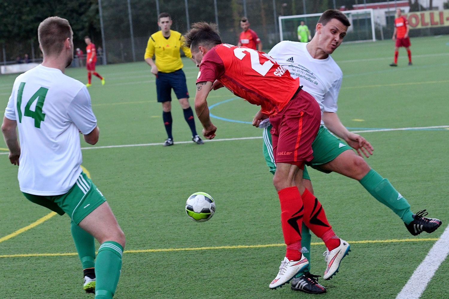 Vor der Partie warnte TuS-Trainer Petrik Sander vor dem A-Ligisten. Der Pokal lebe halt von Sensationen, gab er zu verstehen. Während der Partie dürfte sein Puls aber nur wenig in Wallung geraten sein. Seine Schützlinge agierten sehr unaufgeregt und ließen dem A-Ligisten keine Chance. Dabei konnte sich Sander sogar den Luxus leisten mit André Marx und Michael Stahl zwei wichtige Spieler zu schonen. "Dass war schon ein Spiel, wie man es sich vorstellt", bilanzierte ein sichtlich zufriedener Co-Trainer Gilbert Gorges. Die Gäste waren nach einem verwandelten Foulelfmeter von Daniel von der Bracke (24.) - Christian Haberer hatte Tony Schmidt zu Fall gebracht - und einem Kopfballtor von Dejan Bozic (37.) mit 2:0 in die Pause gegangen. Schmidt (48.) und Julian Grupp (76.) sorgten in der zweiten Halbzeit für den Endstand. Ein Ergebnis, mit dem die Rheinländer leben konnten. "Ich hatte Befürchtungen, dass es zweistellig werden würde", fiel das Fazit von Johannes Grober letztlich positiv aus. Dem pflichtete auch Gorges bei: "Der SV Rheinland hat nie die Ordnung verloren und immer wieder schnell viele Spieler hinter dem Ball gehabt". Fotos: Seydel