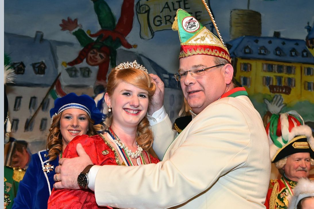 »Endlich sind wir da. Wir haben so lange auf diesen Moment gewartet und sind froh, dass es losgeht«, rief Heike Weber in die Menge. »Wir« das sind die Pagen Kathrin und Jenny sowie Hofnarr Thorsten und Mundschenk Stefan, die sie auf allen Wegen begleiten werden. Als Prinzessin Heike I. setzt sie in dieser Session eine gute, kontinuierliche Familientradition fort. Vor 20 Jahren regierte ihr Vater als »Prinz Hans III.« die Mayener Narren und vor zehn Jahren schwang Bruder Sven als Regent das (närrische) Zepter. Für die Hausener Husarin Heike geht nun ein Traum in Erfüllung, als sie die letzte Insignie ihrer Macht, die Krone, von »Alte Große«-Präsident Christoph Schwab erhielt. Sichtlich gerührt, das ein oder andere Tränchen wegwischend, geht nun als 78. Tollität, aber erste »Solo-Prinzessin, in die Annalen der Stadt ein. »Ich bin die erste Prinzessin, denn ich habe meinen richtigen Frosch noch nicht gefunden«, stellte die sympathische Regentin fest. Aber der sollte schon bald kommen...zumindest im Vortrag. Per Segway (zur Verfügung gestellt von der Firma »Volz«) befuhr Oberbürgermeister Wolfgang Treis die karnevalistisch geschmückte Festhalle. »On doch hann ech ürscht jedaacht dau spinns, be et heeß in Maye jet et düs kir ja kaane Prinz. Et es de letzte Bastion de nau fällt; ewäile können Fraue alles janz ahlan off der Welt...Doch selbst de Prinz, der seit Jahrhunderte Maye reageert, hat ma nau met demm Säje der Alte Gruße ausrangeert«, kommentierte der Stadtchef in seiner Krönungsrede die Alleinregentschaft und weiter: » Domit wär de alleletzt Hürd zur Gleichberechtijung jeschafft.« Dann sorgte OB Treis mit Frack und Zylinder für eine riesige Überraschung: »Wäil de Fraue ümma mieh Strukdure ausradeere, well ech für Heike I. Deutschland erfolgsreichste Sängerin (Helene Fischer) zideere: »Prinzenlos durch die Nacht, dat es de neue Faasenaacht. Prinzenlos in einer Stadt, die so tolle Männer hat. Prinzenlos männerfrei, nur Daheims Dieter ist dabei, der zählt fast (schon) 100 Jahr. Da kommt keine in Gefahr«, damit hatte Treis die Lacher auf seiner Seite. Und präsentierte die Lösung für die prinzenlose Zeit: »Has bes ewäile kaane funne, un de Zäit würd eng, doch ech han de Lösung su aus da Lameng. Denn wenn dau wells, dann ab heut of jeda Bühne säin ech däine Prinz, Prinz Wolfgang der Grüne.« Damit überzeugte der OB mit ganz neuen gesanglichen »Qualitäten«. Um als ansehlicher Prinz darzustehen, schlüpfte er aus seinem Frack und glänzte im feinen Prinzenornat. Geschenke hatte er ebenfalls im Gepäck. Unter anderem überreichte er Mundschenk und Hundefan Stefan einen Gutschein zum Besuch von Holger Schüler‘s Programm »1 - 2 - 3« am Mittwoch, 20. Januar, 20 Uhr, im Autohaus Scherer (www.vg-mayen.de). www.alte-grosse.de Fotos: Seydel/Kruft