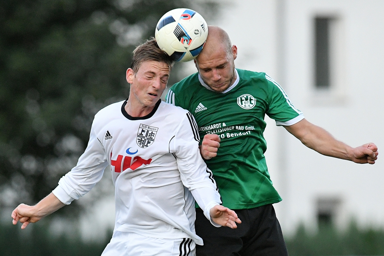 Sowohl TuS-Trainer Thomas Reuter als auch FV-Coach Sascha Watzlawik waren nach dem Schlusspfiff nicht unzufrieden. Die Führung der Mayener durch Pascal Steinmetz (48.) nach Vorarbeit von Matthias Tutas konnte David Peifer (67.) ausgleichen. Beide Teams hatten in der Folge noch die Siegmöglichkeit auf dem Fuß, aber der Engerser Björn Kremer traf nur den Pfosten (82.) und dem Mayener Simon Berresheim (90.+2) sprang der Ball am Fünfmeterraum ans Knie. Für die Statistik: Die letzten fünf Minuten mussten die Gäste nach Gelb-Roten Karten für Kremer (88.) und Christopher Freisberg (90.+2) in Unterzahl agieren. "Wir haben in der zweiten Halbzeit besser gespielt, sahen uns aber auch immer wieder brandgefährlichen Standards der Gäste ausgesetzt. Wir dürfen aber nicht ausblenden, dass wir gegen einen erfahrenen Gegner gespielt haben. Um es in Zahlen auszudrücken: Das Durchschnittsalter unseres Teams war heute 23 und das von Engers 27", so Thomas Reuter. Am kommenden Sonntag, 21. August, 15 Uhr, gastiert der TuS bei der SG Altenkirchen/Neitersen in Altenkirchen. Das nächste Heimspiel ist am Freitag, 26. August, 20 Uhr, gegen die SG Malberg. Foto: Seydel www.tusmayenfussball.de