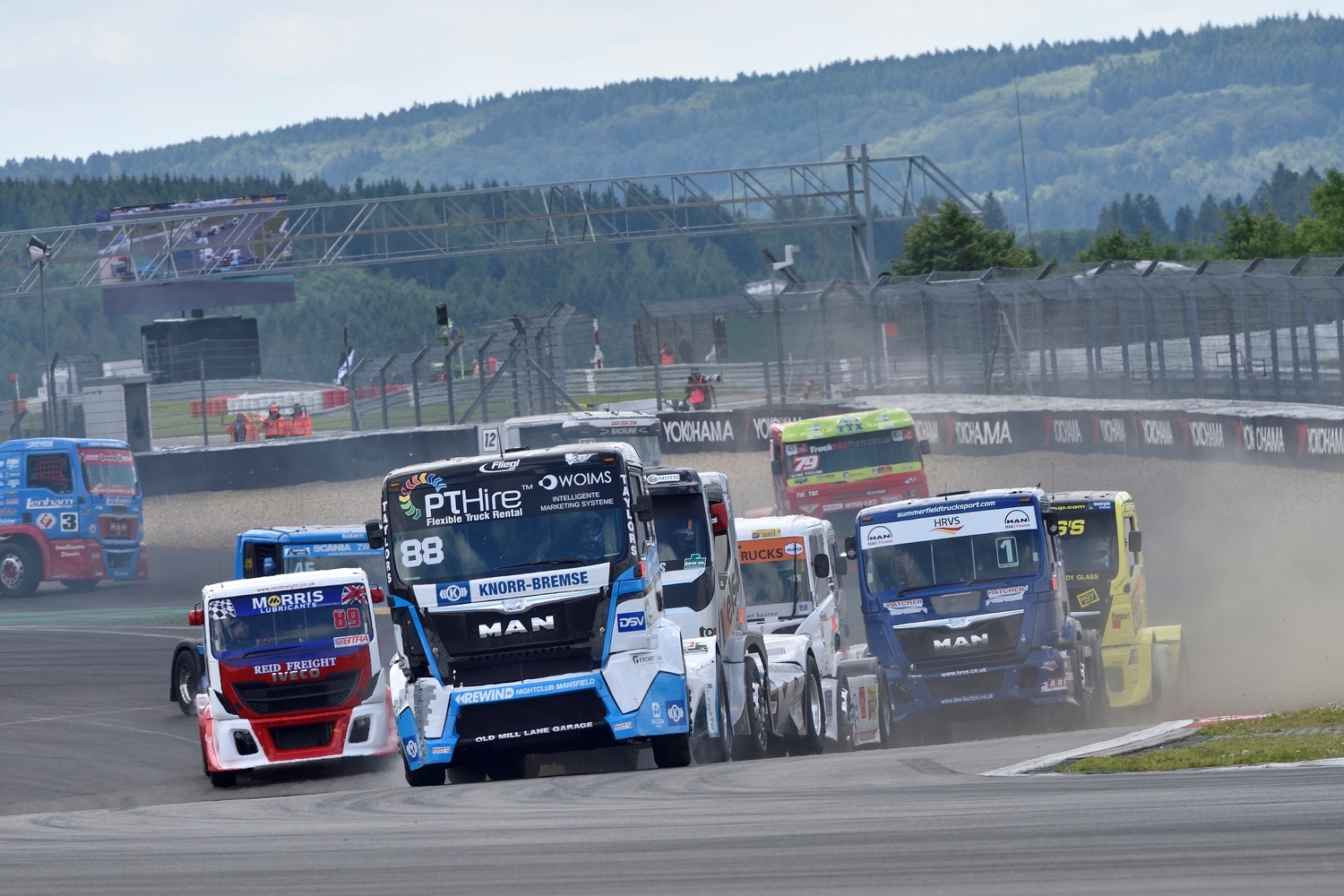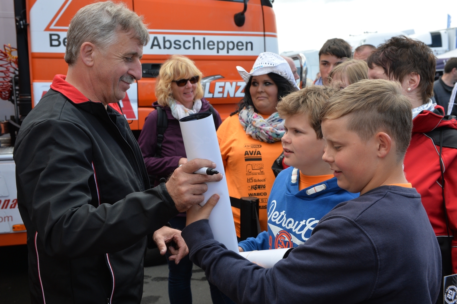 "Unser Konzept kommt an", freute sich ein rundum zufriedener Dr. Klaus Manns, Vorsitzender des veranstaltenden ADAC Mittelrhein, über eine rundum gelungene Veranstaltung. Vor allem kommen die Trucker hier hautnah in Kontakt mit ihren Idolen und deren Fahrzeugen. Traditionell schauen auch immer viele Familien vorbei, deren Kinder sich in der "Family Event Area" auf Hüpfburgen und Rutschen sowie beim Kistenklettern, Glücksrad und beim Bullenreiten austoben. Bereits Ende April meldete der Partner für den Industriepark wieder ein ausverkauftes Messe- und Veranstaltungsgelände. Mehr als 24.000 Quadratmeter standen für Lkw-Hersteller, Zulieferer aus der Branche, Spediteure, Logistiker, Reifenhersteller sowie Marketender zur Verfügung und jeder Quadratmeter wurde genutzt. Einer der Höhepunkte des "Internationalen ADAC Truck-Grand-Prix" ist der Korso der Herstellerfirmen, am Samstag und Sonntag über die Grand-Prix-Strecke des Nürburgrings: Hier präsentieren sie ihre Trucks, Sattelschlepper, Campingfahrzeuge, Busse, Feuerwehr- und Polizeiautos und Co.. Zum Rahmenprogramm der Truckrennen von FIA-Europameisterschaft und Mittelrhein-Cup gehörte in diesem Jahr erstmals die Supersportwagenserie "Blancpain Sprint Series". Auf der Sprintstrecke zeigten sich die Edelschmieden Ferrari, Lamborghini, Porsche, Bentley und Co. den Fans. In der FIA-Europameisterschaft der Race Trucks ist der Nürburgring einer der zehn Austragungsorte. Für die Fahrer der 1.200-PS-Renntrucks ist das Eifelrennen der absolute Höhepunkt, wie sie sagen. Der amtierende Europameister Norbert Kiss (Ungarn) meint: "Wir fahren ja sonst nie vor so vielen Leuten wie hier am Nürburgring. Die Stimmung ist fantastisch - und das das ganze Wochenende." Als Sieger konnten sich heuer Jochen Hahn, Steffi Halm und zweimal der Tscheche Adam Lacko feiern lassen. Bei den Läufen zum "ADAC Mittelrhein-Cup" triumphierte der Brite Ryan Smith zweimal. Lokalmatador Heinz-Werner Lenz landete im ersten Lauf auf dem zehnten Platz. Sein Sohn Sascha fuhr im zweiten Lauf auf Rang drei und damit aufs Podium. Darüber hinaus zeigte unter anderem der vierfache Guinness-Rekordhalter und Stuntman Jürgen Köhler auf seinem Quad sein Können. Fotos: Seydel www.truck-grand-prix.de