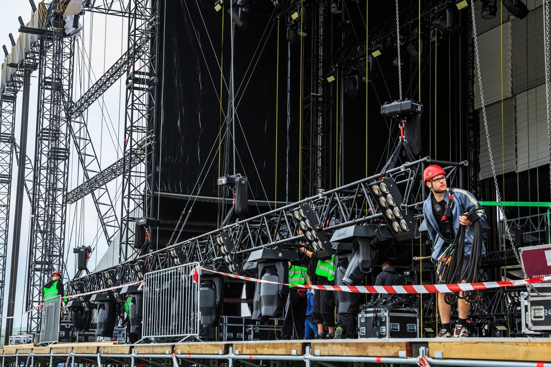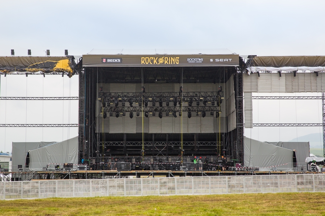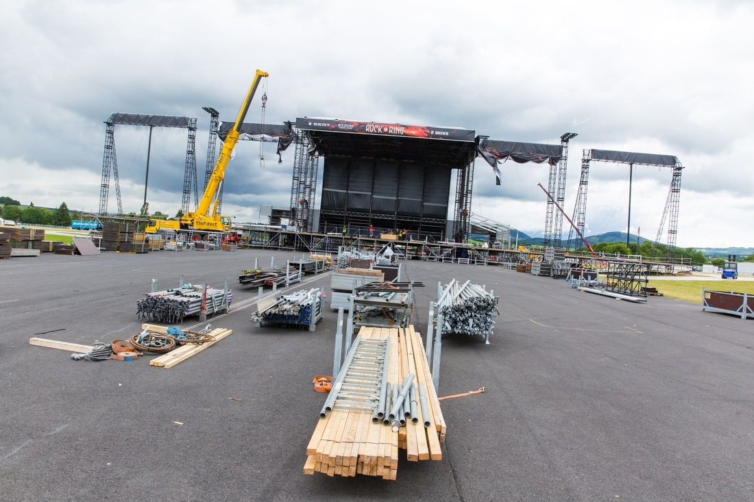 Auf den Bühnen wird letzte Hand angelegt, damit "Rock am Ring" am Freitag starten kann. Insgesamt werden mehr als 92.000 Rockfans erwartet, um Bands wie den Red Hot Chilli Peppers, Black Sabbath, The BossHoss und Volbeat zuzujubeln.  Fotos: Seydel (7)/ Hau (1)