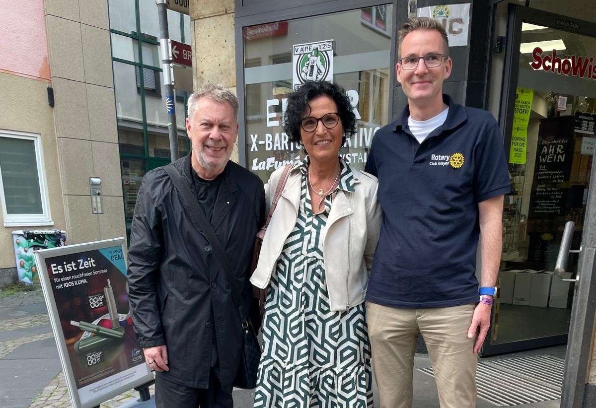 Der 1969 gegründete Rotary Club Mayen, mit seinen rund 50 Mitglieder aus der Region vereint vielfältige Experten aus Wirtschaft, Wissenschaft und Kultur, welche sich neben ihren wöchentlichen Club-Treffen auch mit Vorträgen, Diskussionen, aber auch dem Engagement für regionale Produkte und die Förderung der Felder Bildung, Soziales und Gesundheit beschäftigen. Weltweit verbindet Rotary 1,4 Millionen Mitglieder, die im internationalen Austausch und Dialog vielerlei Hilfsprojekte und humanitäre Einsätze ermöglichen.