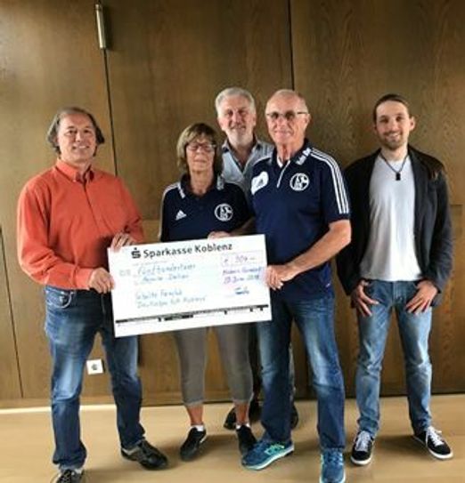 Willi und Beate Immecke vom "Schalke-Fanclub Deutsches Eck Koblenz" haben eine Spende in Höhe von 504 Euro für eine junge Serbin an Werner Huffer-Kilian, Pastoralreferent des Dekanats Maifeld-Untermosel und Mitglied des Flüchtlingsrats Rheinland-Pfalz, übergeben.