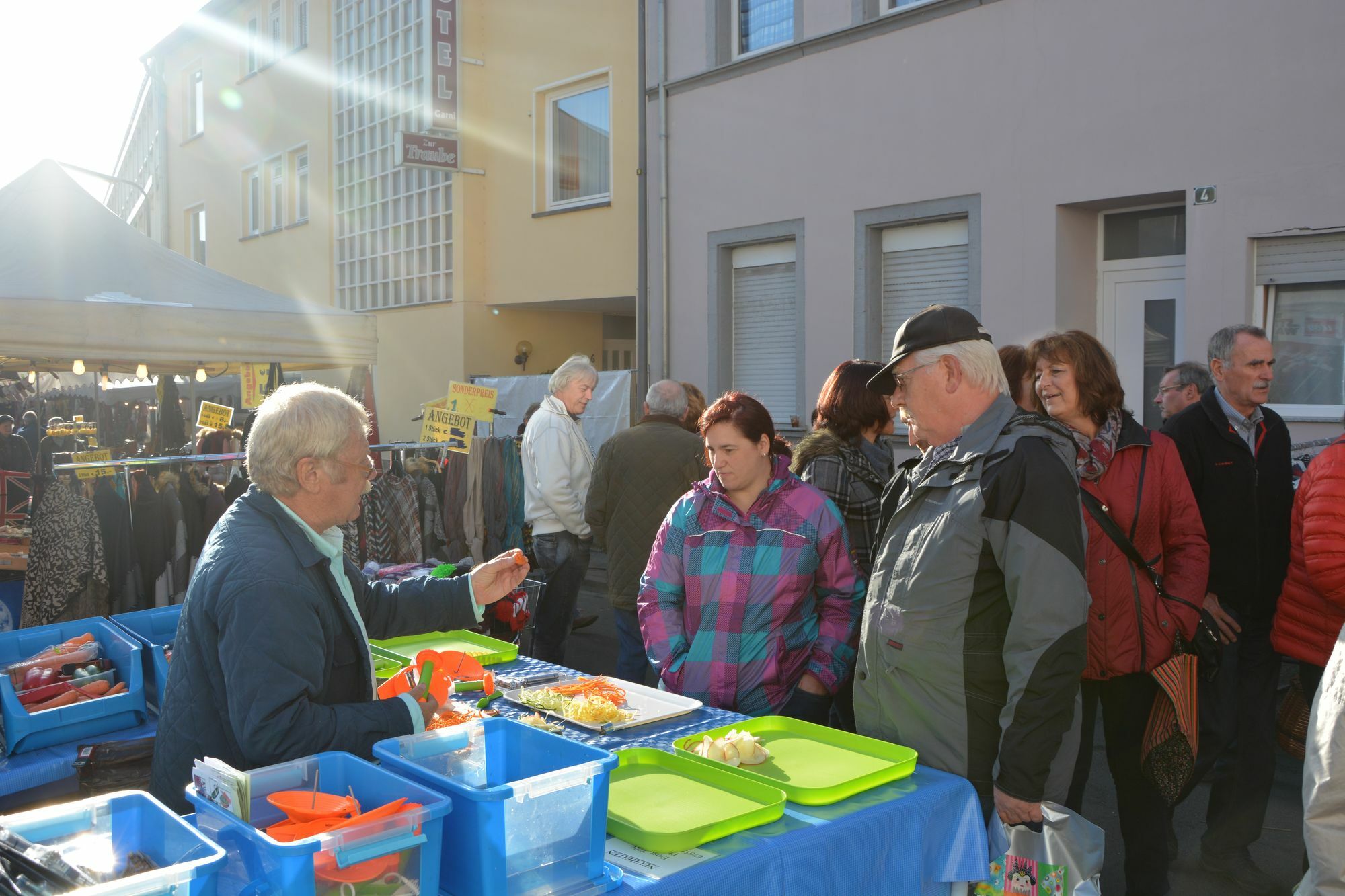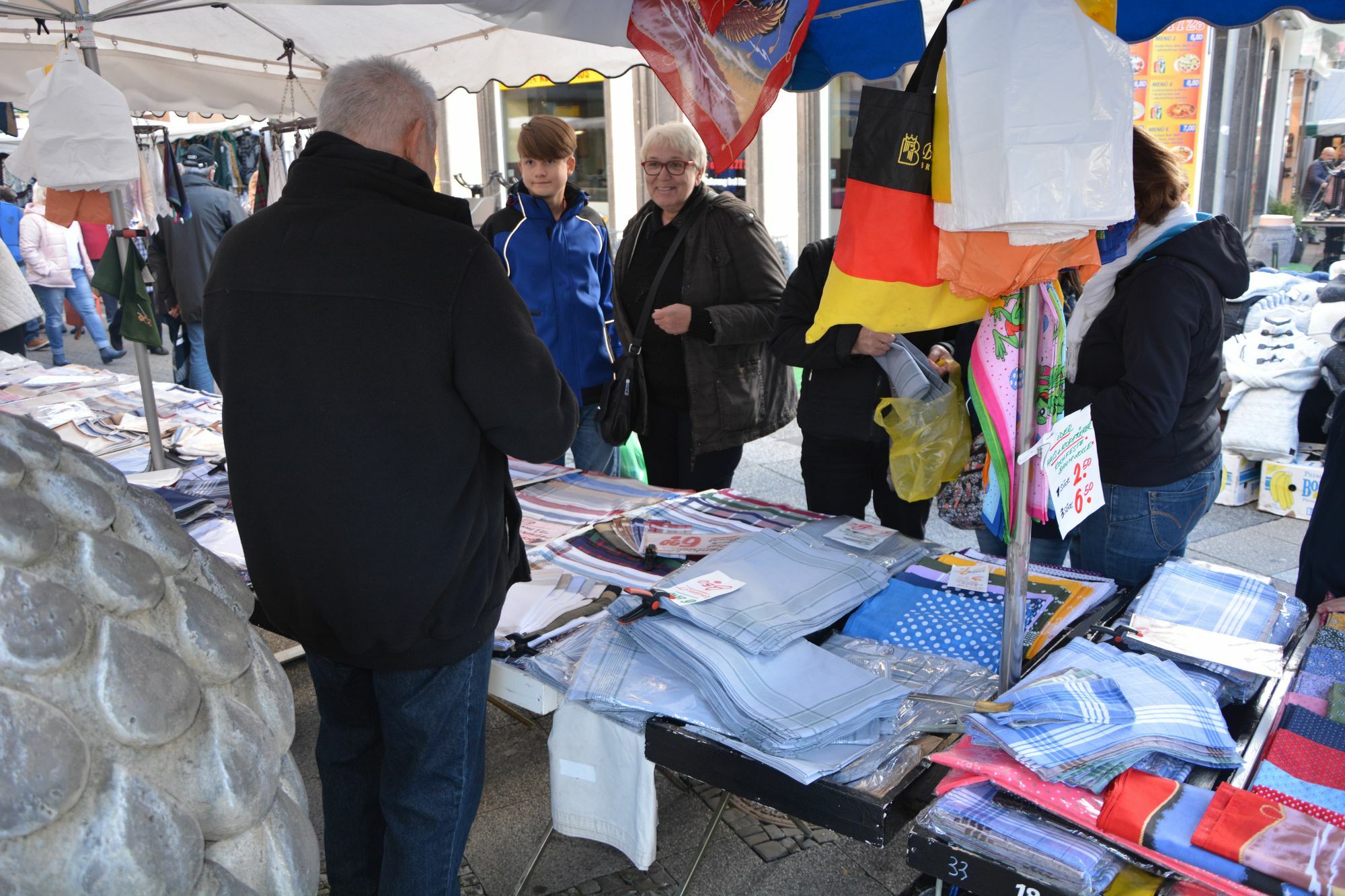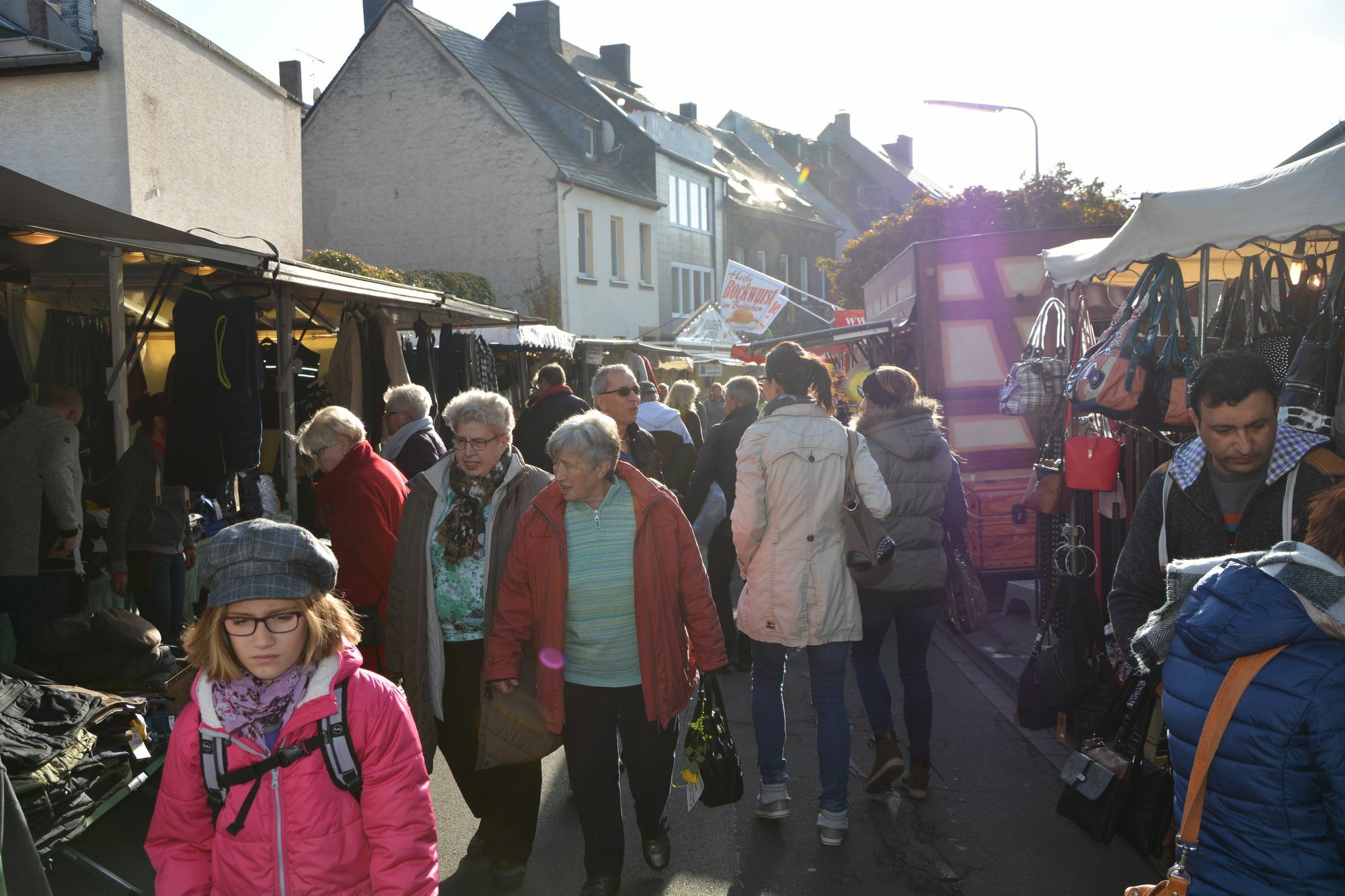 In den Straßen der Mayener Innenstadt tummeln sich die Menschen schon früh, denn: Es sind die Krammarkttage des Lukasmarktes. Schon in den frühen Morgenstunden wurden die zahlreichen Stände mit einem umfangreichen Sortiment aufgebaut, die nun zum Bummeln und Stöbern einladen.