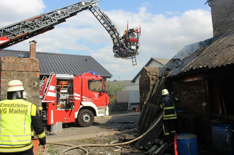 Am Brandort waren 29 Feuerwehrleute der Feuerwehren, Mertloch, Mayen, Polch und Kollig, sowie zwei Rettungsfahrzeuge des DRK im Einsatz. Die Feuerwehren hatte den Brand schnell unter Kontrolle, es wurden keine Personen verletzt. Der Schuppen brannte aus und an einem benachbarten Carport entstand ebenfalls Sachschaden. Die genaue Schadenshöhe lässt sich derzeit noch nicht beziffern. Nach ersten Erkenntnissen könnte das Feuer durch Schweißarbeiten an Dachpappebahnen entstanden sein. die Kriminalpolizei Mayen hat Ermittlungen aufgenommen.