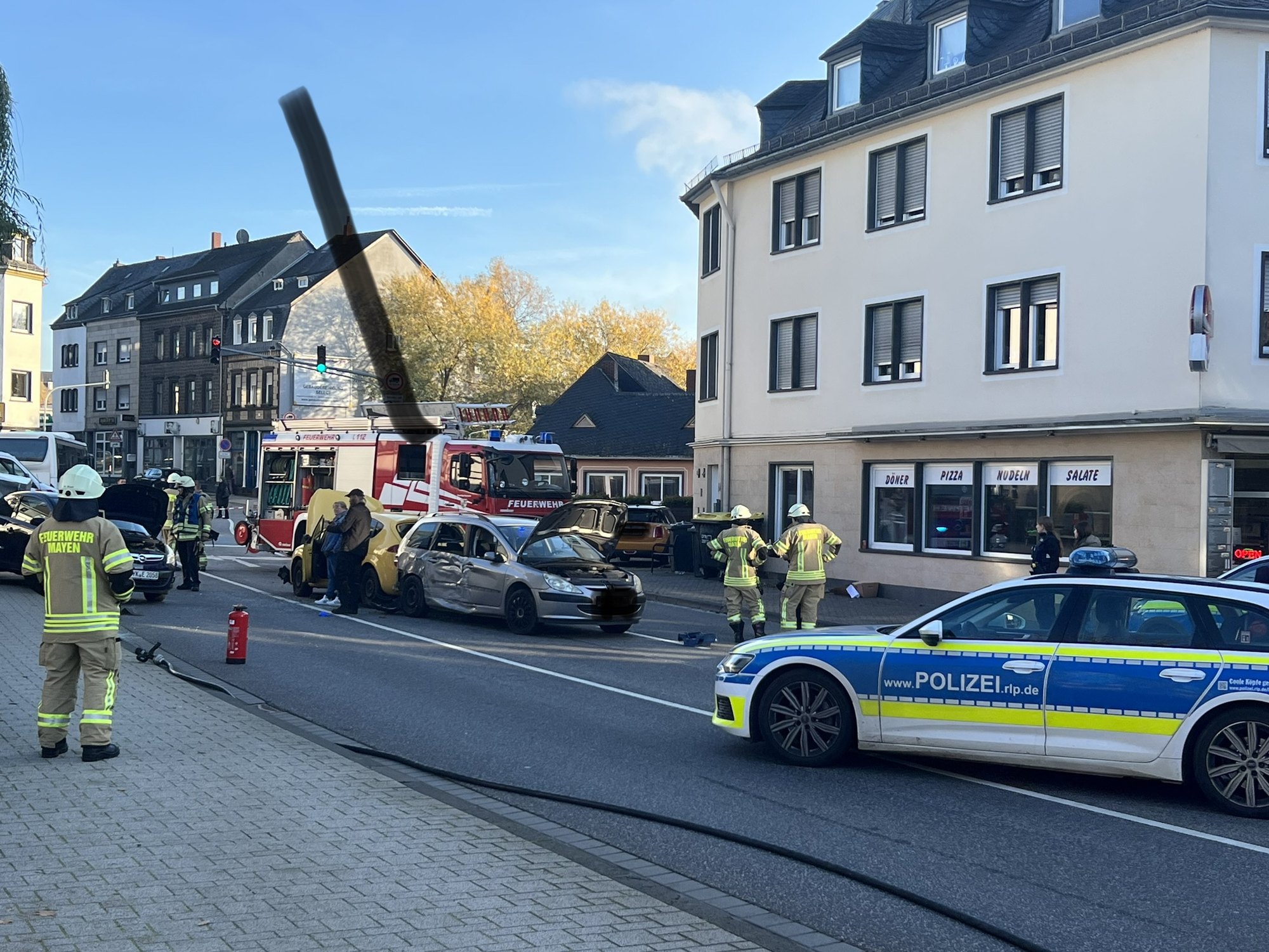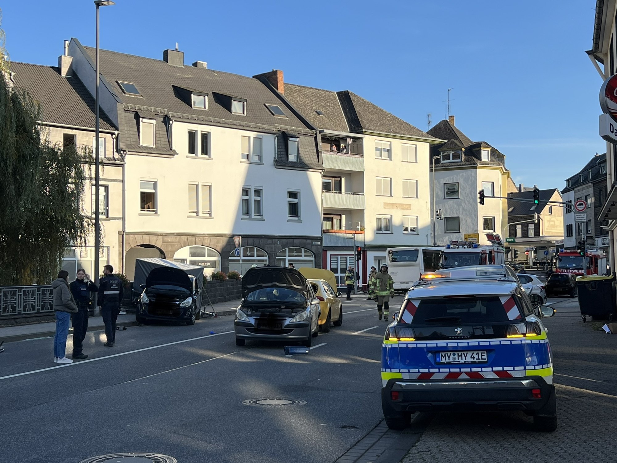 Mayen. Am heutigen Freitag kam es gegen 14.20 Uhr zu einem Verkehrsunfall, an dem ein Linienbus und sechs PKW beteiligt waren. Aktuell sind Kräfte von