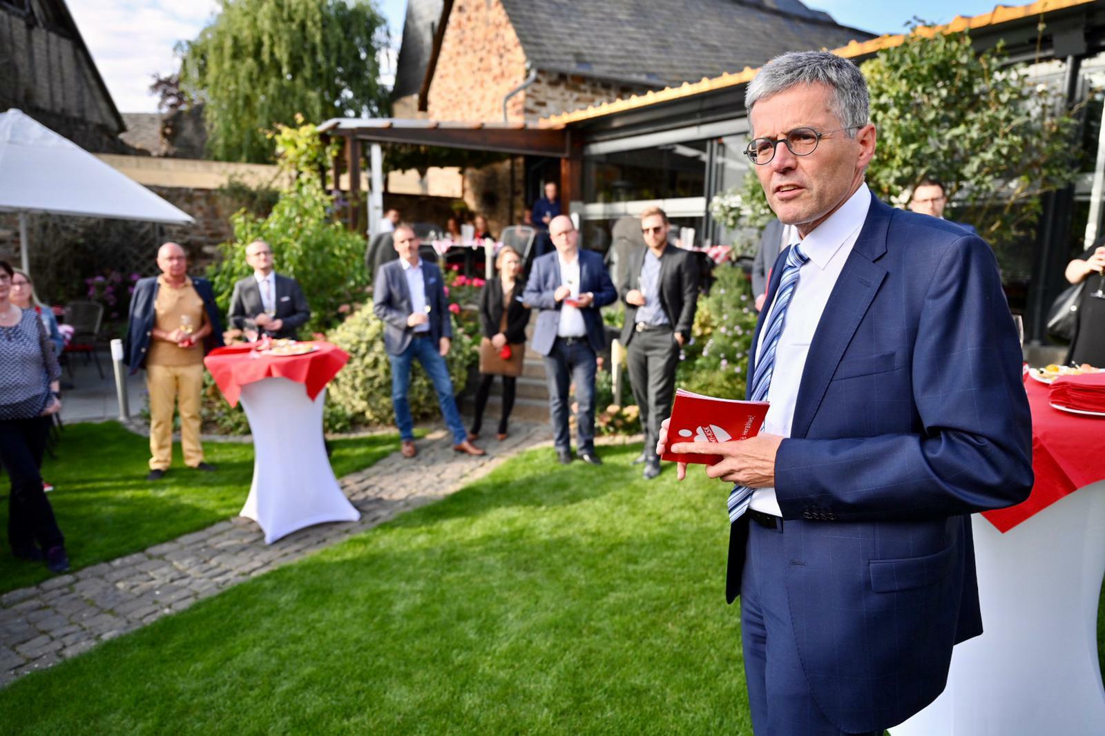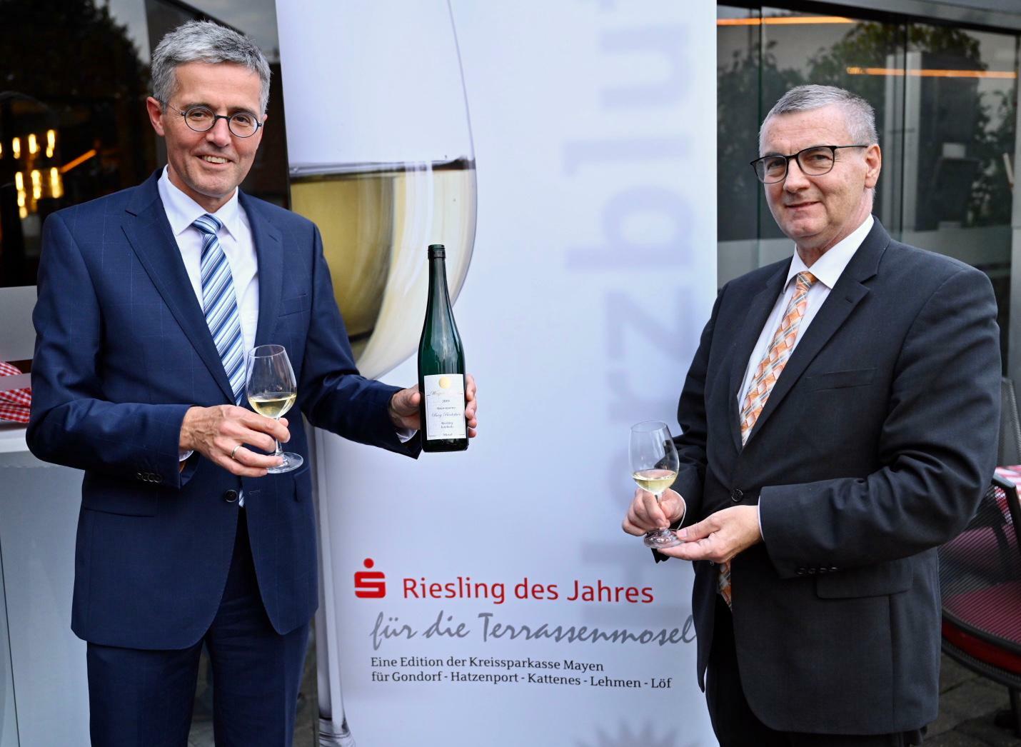 Zur Probe, die dieses Mal in "Löffel's Landhaus" in Münstermaifeld ("auf den Moselhöhen") stattfand, wurden 30 Weine von 17 Winzern eingereicht. In der ersten Proberunde wurden die Weine durch Offizialprüfer und Weinspezialisten aus der Gastronomie in Form einer Qualitätsweinprüfung nach Punktzahlen bewertet. Die zwölf bestbewerteten Weine kamen dann in die zweite Proberunde, an der vierzehn weitere Jurymitglieder teilnahmen. Hierzu zählten neben Landrat Dr. Alexander Saftig, Verbandsgemeindebürgermeister Bruno Seibeld, Ortsbürgermeister der teilnehmenden Orte, Pressevertreter, KSK-Filialleiter in Münstermaifeld Martin Steinsiek sowie KSK-Verwaltungsratsmitglied Claudia Blotzki. Karl-Josef Esch, Vorstandsvorsitzender der KSK Mayen, begrüsste die Jury zur Weinprobe 2020. „Wir sind stolz darauf, mit unserem Wettbewerb die kleine Weinbauregion in unserem Geschäftsgebiet unterstützen zu können. Auf diese Weise ehren wir die Winzer und ihre Weine, die dies dank ihrer hervorragenden Qualität verdient haben“, so Karl-Josef Esch weiter. Eine Herausforderung war, den Wettbewerb auch in Zeiten von Corona unter Einhaltung der entsprechenden Hygieneauflagen durchzuführen. Aus den besten drei Rieslingen konnte in der finalen Runde der 219er Hatzenporter Burg Bischofstein Riesling Qualitätswein aus der Steillage feinherb vom Winzerhof Gietzen aus Hatzenport zum Sieger gekürt werden. Den zweiten Platz belegte der 2019er Hatzenporter Kirchberg Riesling Qualitätswein halbtrocken vom Weingut Brunnenhof, Klaudia und Bernhard Ibald aus Hatzenport, gefolgt auf Platz drei, dem 2019er Hatzenporter Im Trischelsberg Riesling Qualitätswein trocken vom Weinbau Im Trischelsberg, Mülheim-Kärlich. Die Siegerehrung findet voraussichtlich im Oktober ebenfalls im Restaurant Löffel´s Landhaus in Münstermaifeld statt. Vor dem Hintergrund der aktuellen Coronaauflagen dann jedoch in einem anderen Rahmen als in den Vorjahren.
