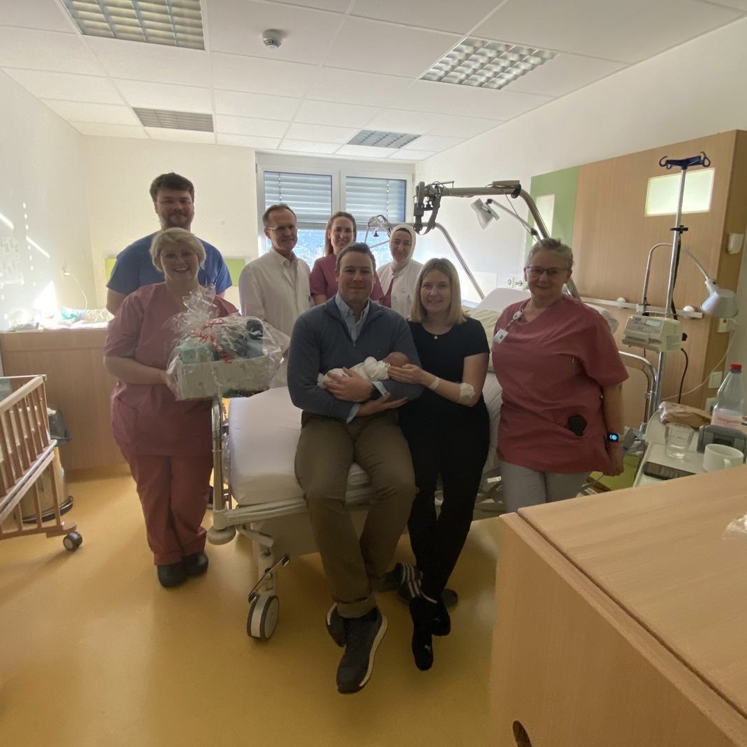 Die herzlichsten Glückwünsche für das Neujahrsbaby Leo überbrachten Vertreter der Ärzteschaft, der Hebammen und der Pflegekräfte des St. Elisabeth Mayen. Mama Miriam und Papa Matthias freuten sich sehr.