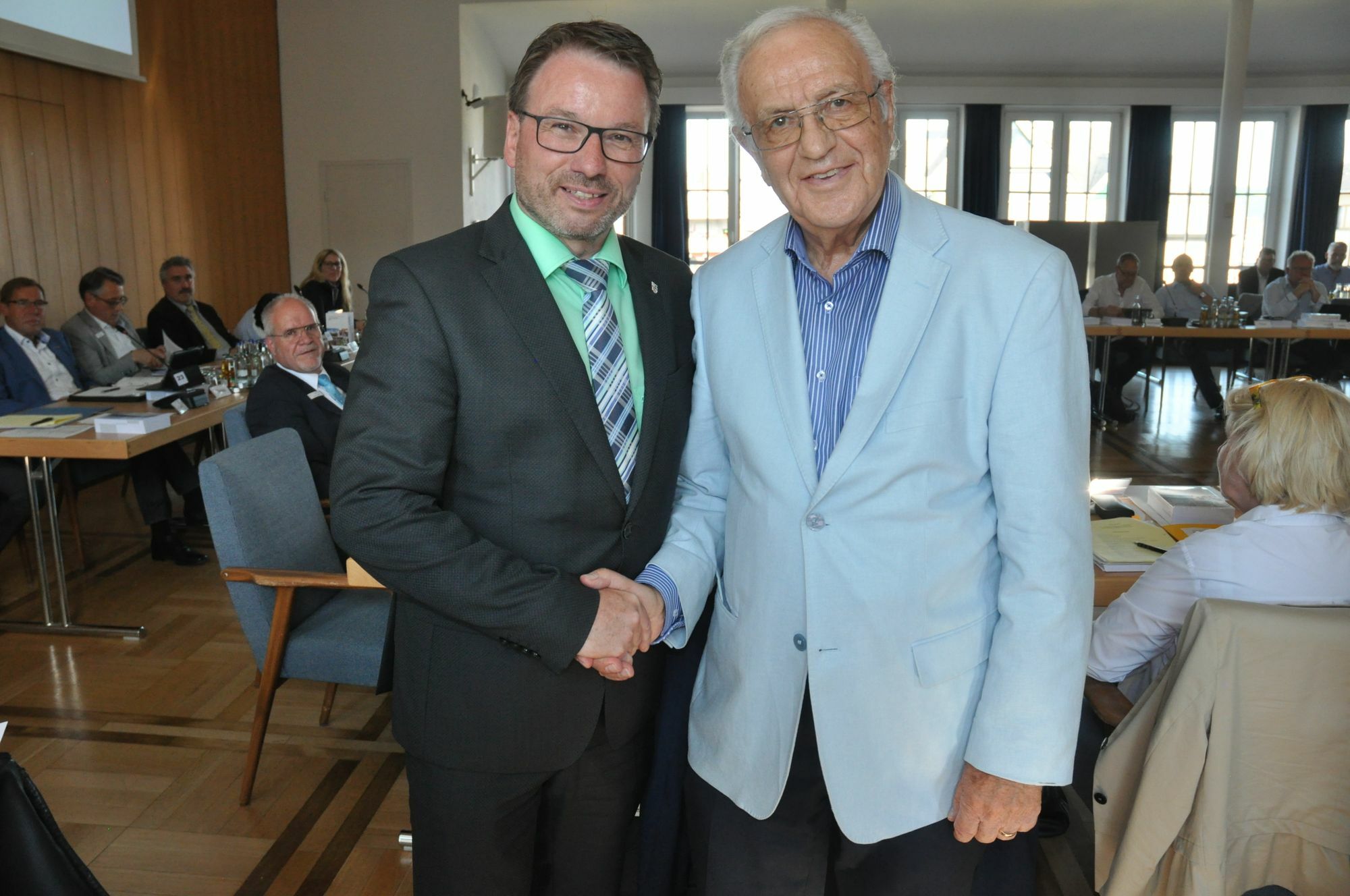 Die Mayener Stadtspitze ist komplett: Bernhard Mauel (CDU) wurde zum Ersten Beigeordneten, Christoph Michels (Bündnis90/Grüne) zum 2. Beigeordneten und Thomas Schroeder (FDP) zum 3. Beigeordneten gewählt. Mauel, der einen eigenen Geschäftsbereich bekommen wird, erhielt 27 Ja-Stimmen, drei Stadtratsmitglieder votierten gegen ihn. Michels wurde mit 24 Ja-Stimmen und sechs Gegenstimmen und Schroeder mit 22 Ja-Stimmen und acht Gegenstimmen gewählt. Zudem wurden die ausgeschiedenen Ratsmitglieder, Bürgermeister Rolf Schumacher (CDU) und die Beigeordnete Martina Luig-Kaspari (SPD) verabschiedet. Die SPD-Politikerin gehört dem Stadtrat aber weiter als Mitglied an. Darüber hinaus stimmte der Stadtrat einstimmig Beschlussfassungen zu Rolf Schumacher die Ehrenbürgerwürde und Peter Wilbert (CDU) den Ehrenring der Stadt zu verleihen. Schumacher war unter anderem zehn Jahre Bürgermeister der Stadt und hat "in der schwierigen Zeit" nach dem Tod von Oberbürgermeisterin Veronika Fischer zusammen mit Marika Kohlhaas monatelang die Geschicke der Stadt gelenkt. Zudem ist er seit der Gründung des Mayener Radsportclubs 1965 ununterbrochen im Vorstand aktiv - heute als Ehrenvorsitzender. Peter Wilbert war insgesamt 50 Jahre im Stadtrat und der Verwaltung tätig - darunter 14 Jahre als Beigeordneter. Fotos: Pauly www.mayen.de