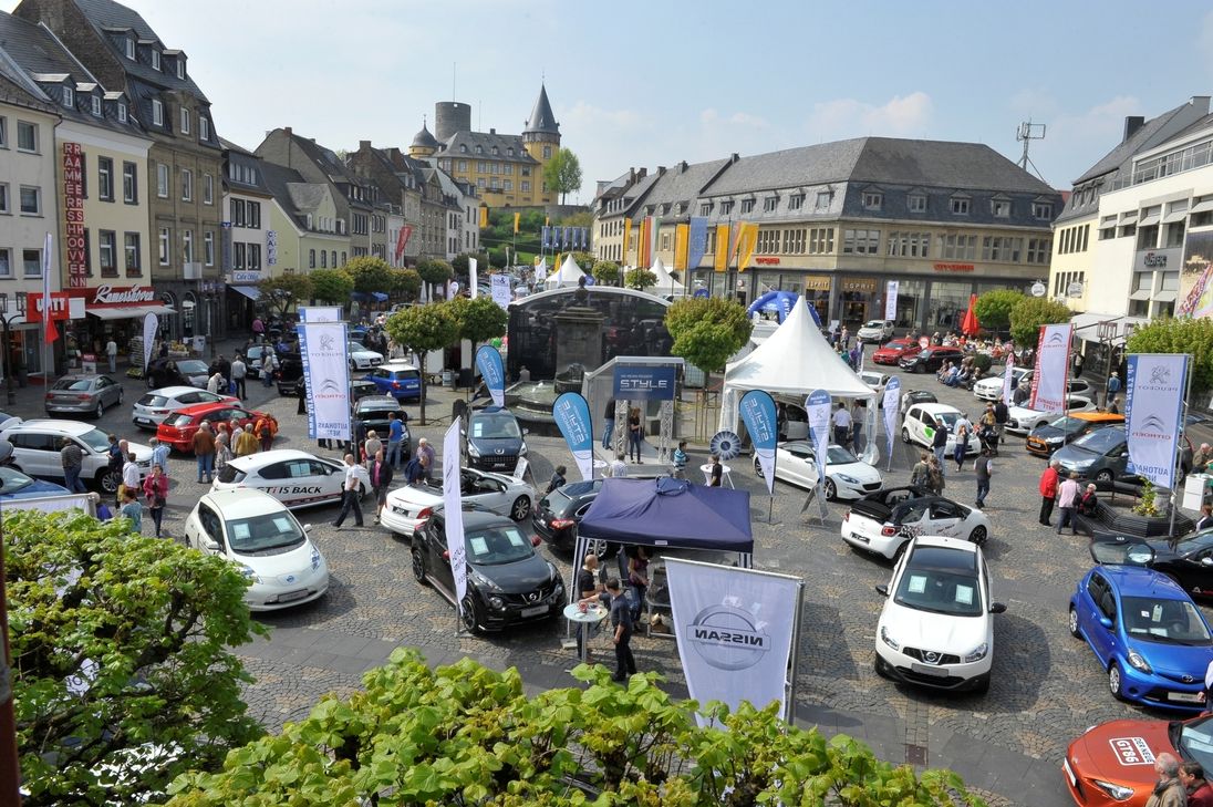 Mayen wird gerne als "Tor zur Eifel" bezeichnet. Und wer an Eifel denkt, der denkt meist auch schnell an den Nürburgring. Aber nicht nur an und auf der legendären Rennstrecke liegt Benzin in der Luft. Gemessen an der Einwohnerzahl ist Mayen wohl auch die Auto-Hauptstadt der Eifel, wenn es um die Zahl der Autohäuser und die damit vertretenen Marken geht. Diese Marktstellung dokumentiert sich auch im Zusammenschluss der Mayener Autohäuser - den "Profis". Diese sind die Protagonisten der jährlich stattfindenden Autoschau im Herzen der Eifelstadt. Dann ist der Marktplatz im übertragenen Sinne das, was er bis in die 1980er Jahre auch war: ein großer Parkplatz - allerdings mit dem Fokus auf viele Automarken und neue Modelle. Wie sieht die (Auto-)Mobilität in der Zukunft aus? In diesem Jahr werden sicher auch die Themen "Wieviel Zukunft haben Diesel-Fahrzeuge und der Verbrennungsmotor überhaupt?", "Wie reagieren die Hersteller auf drohende Fahrverbote in Innenstädten?" und "Wie reif ist die Zeit eigentlich für die Elektromobilität?" diskutiert werden. Viele Hersteller setzten der allgemeinen Verunsicherung um die zukünftige Mobilität zuletzt neue Angebote entgegen. Der Autokunde wird Fragen stellen und auf Antworten der Autohändler warten. Viele Marken konzentriert auf dem Marktplatz Die Schau hat für alle Besucher natürlich einen sehr großen Vorteil. Auf einem überschaubaren Raum können sie sich informieren, vergleichen, Probefahrten vereinbaren und in ihrem Traumfahrzeug zur Probe sitzen. "Es ist der erste Kontakt, der durch seine Unverbindlichkeit natürlich für beide Seiten von Vorteil ist. Die Hemmschwelle in ein Autohaus zu gehen entfällt und trotzdem können wir beraten", so ein Händler. Das alles stressfrei und mit einem hohen Unterhaltungsfaktor, denn Musik und Entertainment gehören zur Autoschau genauso wie schnittige Sportwagen oder praktische Familienautos. Wenn Papa also nach einem neuen Fahrzeug Ausschau hält, kann sich der Nachwuchs beispielsweise von Clown Peppino und seinem Freund Archybald bespaßen lassen. Und dass am Sonntag, 6. Mai, auch noch verkaufsoffen ist, schmälert den Unterhaltungsfaktor sicher nicht. Schauen und shoppen ist eine Kombination die Interessen zusammenführt. Die Autoschau der »Profis« kompakt Samstag, 5. Mai: Eröffnung (11Uhr), Live-Musik mit der "Sunshine Dance Band", Kinderprogramm mit dem Clown Peppino und seinem Freund Archybald, Fitness-Show. Sonntag, 6. Mai: Live-Musik mit "Fossdoll", Kinderprogramm, Fitness-Show, "Havanna Beach"-Fashion Shows by Modehaus Küster (13, 14.30 und 16 Uhr) und verkaufsoffener Sonntag (13 bis 18 Uhr). Foto: Archiv/Pauly