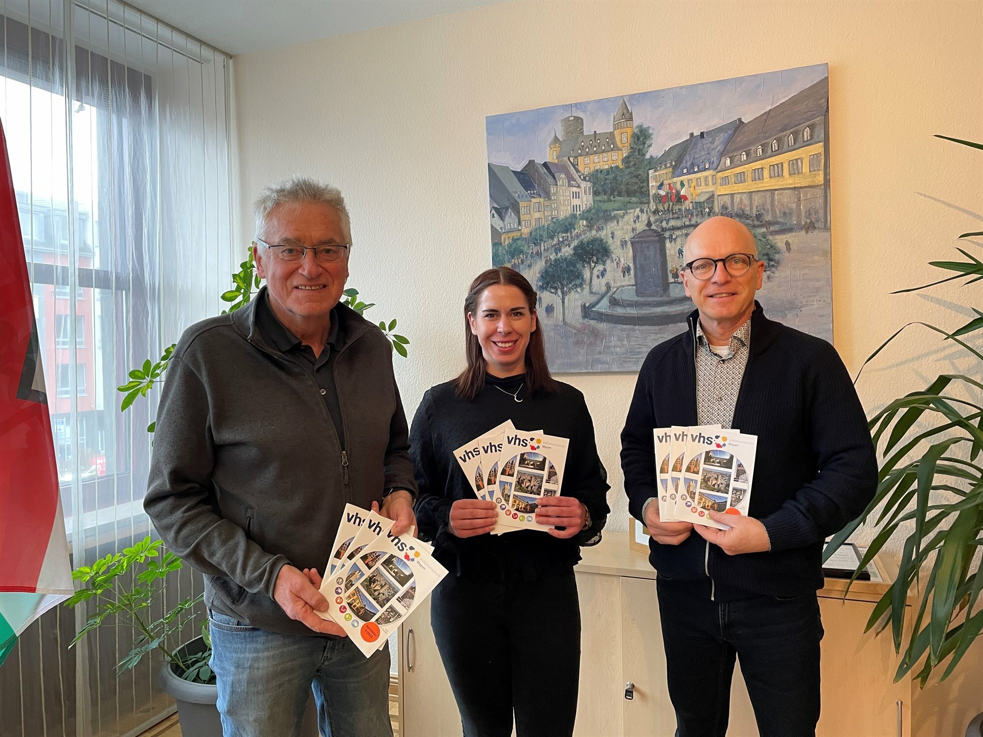 Mayen. Oberbürgermeister Dirk Meid hat den neuen Arbeitsplan der VHS Mayen für das I. Semester 2023 entgegennehmen können. "Die Mitarbeiter der Volkshochschule Mayen haben auch für das kommende Semester wieder ein vielfältiges Programm erstellt.", lobte der Oberbürgermeister das VHS-Angebot. Unter dem Motto "Wissen und mehr" werden eine Reihe von attraktiven Kursen aus den Bereichen Gesellschaft, Gesundheit, Sprachen und künstlerisches Gestalten angeboten. Auch Angebote zur Weiterbildung einiger Kooperationspartner der VHS, wie zum Beispiel die Verkehrssicherheits- und Mobilitätsberatung der Verkehrswacht Mayen-Koblenz und dem Katholischen Verein für soziale Dienste Mayen und Umgebung finden hier ihren Platz. Im Bereich Entspannung und Gesundheit, konnte die VHS neue Dozentinnen und Dozenten gewinnen und im Bereich Seniorenbildung wird Altbewährtes angeboten. Das VHS-Semesterverzeichnis ist kostenlos bei der Geschäftsstelle der VHS, Rathaus Rosengasse, der Tourist-Information Mayen, sowie in vielen Geschäften, Arztpraxen und Versicherungen in der Innenstadt von Mayen erhältlich.