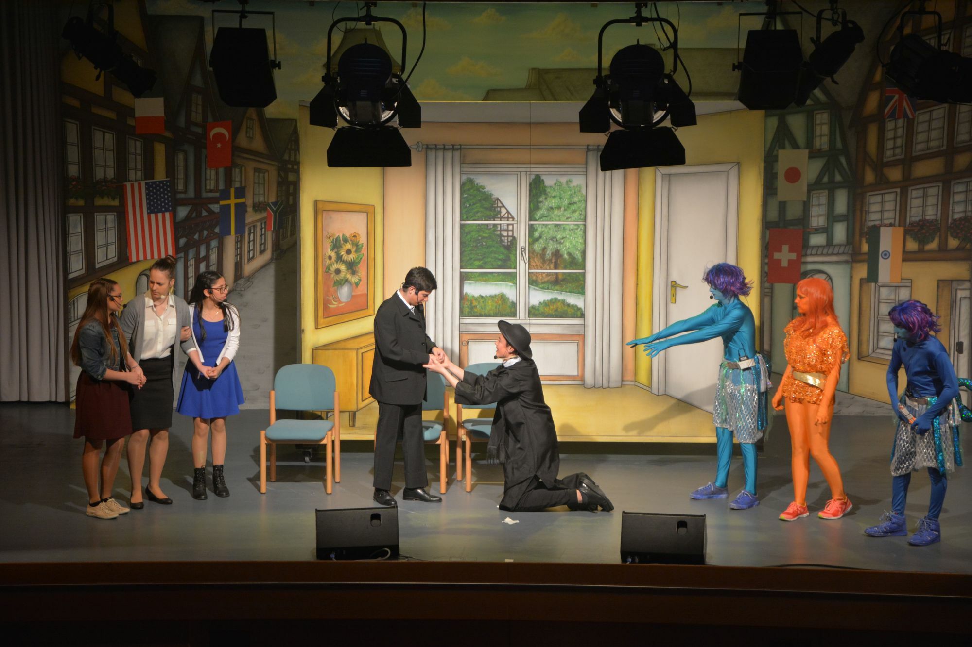 Ausverkaufte Hallen sind beinahe schon ein Markenzeichen für die Musicals der Integrierten Gesamtschule Pellenz in Plaidt, wären das nicht noch die Professionalität, die Eingängigkeit der Melodien und der Anspruch, eine Botschaft herüberzubringen. So ist es kein Wunder, dass auch alle fünf Aufführungen im Kottenheim seit langem restlos ausverkauft sind. Zur Kottenheimer Premiere begrüßte Martin Becker Schülerinnen und Schüler der Grundschulen und weiterführenden Schulen aus der Region. In fast drei Stunden fieberten die Gäste mit den Protagonisten, allen voran Prinzessin Paschira und ihre pubertierenden Zöglinge Janis und Junis, die aus dem All zum blauen Planeten kommen. Sie landen mit ihrem Raumschiff im „fremdenfreundlichsten Ort“ – nach eigener Aussage der Brücktaler. Doch das, was die drei erleben, ist weit davon entfernt multikulti zu sein. Sie erleben den „Kampf“ um die Krone der Sternenprinzessin, die als Höhepunkt der kulturellen Woche vergeben wird. Sowohl die steinreiche Liv von der Heiden, als auch die zugezogene Emma Weiss möchten gekrönt werden. Die „echte“ Sternenprinzessin Paschira schaut sich das Treiben, das immer wieder von Janis und Junis mit ihrem Psychostrahler gestört wird, an und bringt das Problem auf den Punkt: „Fremde erzeugen Ängste und Ängste können aggressiv machen.“ Während der „Kulturwoche“ in Brücktal werden Tänze aus Amerika, Indien, China, Japan in phantastischen Kostümen und aufregenden Choreografien auf die Bühne gebracht. Der Lichtertanz mit Einsatz von Schwarzlicht krönte nochmal die vielen Tanzeinlagen. Von der ersten bis zur letzten Minute – nach fast drei Stunden – verfolgten die Schülerinnen und Schüler sehr aufmerksam das Geschehen auf der Bühne, um mit langem Applaus den Akteuren der IGS ihre Anerkennung für ihre grandiose Leistung zu zollen. Die „Sternenprinzessin“, zweifellos ein Stück für die ganze Familie, gastiert nach Kottenheim noch in Mühlheim-Kärlich (Mai) und in Polch (November). Fotos: Kruft