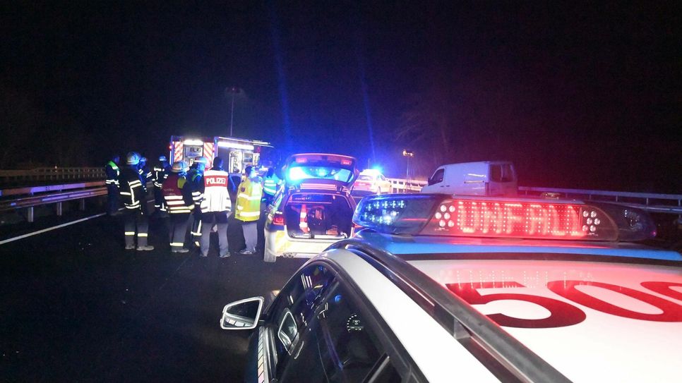 Der Mann war nach ersten Erkenntnissen der Polizei mit seinem Fahrzeug ins Schleudern gekommen und mit einem weiteren Fahrzeug kollidiert. Als er ausstieg und offensichtlich die Fahrbahn überqueren wollte, wurde er vermutlich von einem Lkw und weiteren Pkw erfasst. Die Ermittlungen zum Unfallhergang dauerten, so die Polizei, aber noch an. Die A 48 war an der Unfallstelle bis kurz vor 6 Uhr voll gesperrt. Foto: Walz