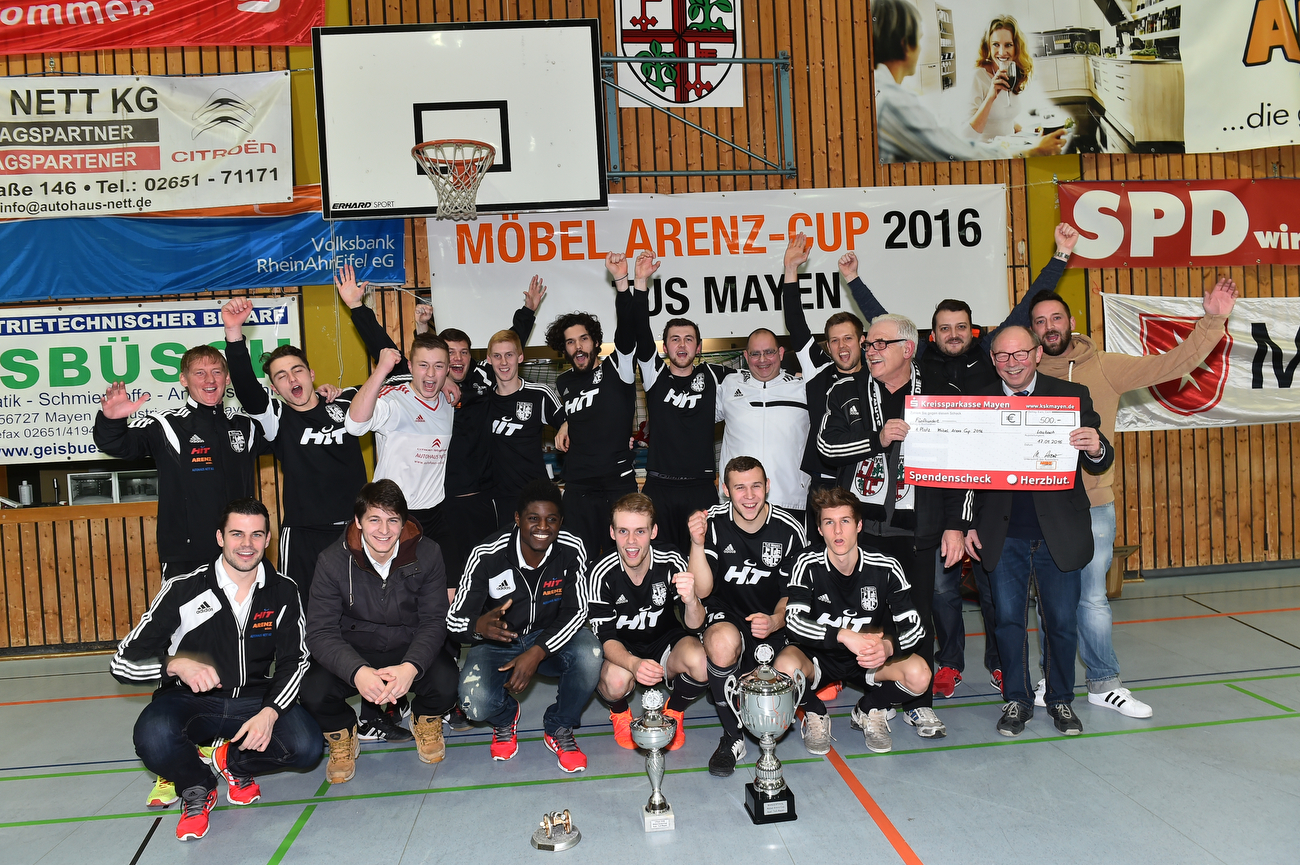 Zum Abschluss der Hallenrunde war TuS-Trainer Thomas Reuter mit seinem Team zufrieden. "Wir haben in der Gruppenphase zwar ein sehr schlechtes Spiel gegen den SV Rheinland mit 1:6 verloren, aber danach haben wir uns von Spiel zu Spiel gesteigert. Zudem können wir feststellen, dass das Turnier von den Vereinen und vom Publikum angenommen wurde", fiel Reuters Budenzauber-Bilanz positiv aus, bis auf die Tatsache dass sich Uwe Unterbörsch beim Turnier in Plaidt den Fuß gebrochen hat. "Das ist natürlich ein Wermutstropfen", so der TuS-Coach. Sehr zufrieden war auch Patrick Rölle, der mit seinem SV Rheinland Mayen ein beherztes und sehr gutes Turnier gespielt hat. "Wir haben kein Spiel verloren", gab er gerne zu Protokoll. Mit den Zugängen Carsten Fieth (FV Engers) und Nico Anheier (SG Mendig/Bell) sieht er sein Team jetzt auch eindeutig auf Kurs Meisterschaft in der Kreisliga B. "Die Meisterschaft ist Pflicht, da gibt es keine Ausreden mehr", erhöht er den Druck. Für die SG eintracht Mendig/bell endete das Turnier nach einer 3:1-Niederlage gegen die SG 99 Andernach im Kleinen Finalemit dem vierten Platz. "Wir haben uns besser als beim Turnier in Mülheim-Kärlich präsentiert und es hat sich keiner verletzt", fiel das Fazit von Trainer Thomas Brühl recht entspannt aus. Dass seine Mannschaft am gestrigen Samstag bereits draußen gegen die TuS Koblenz testete ging mit in die Bewertung ein. Der Oberligist konnte sich an der Brauerstraße letztlich mit 3:1 (0:0) durchsetzen. Darüber hinaus lag der Fokus auch auf den Neuzugängen der SG. Mit Goalgetter Damir Mrkalj (TuS RW Koblenz) und Nachwuchshoffnung Matthias Strahl (TuS Mayen) glaubt Brühl zwei Spieler verpflichtet zu haben, die zum Rheinlandligisten passen und die der SG auch sportlich weiter helfen. Foto: Seydel www.tusmayenfussball.de