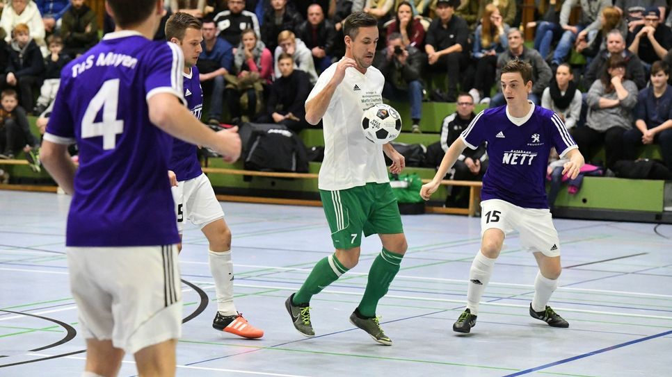 Erst im letzten - letztlich für den Ausgang unbedeutendem - Turnierspiel musste der Favorit Federn lassen. Gegen den SV Rheinland Mayen, der mit 14 Punkten Zweiter wurde gab es ein 2:2. Turnierdritter wurde der SV Kürrenberg, der elf Punkte sammeln konnte. Den vierten Platz sicherte sich der TuS Hausen mit acht Punkten vor dem ausrichtenden SV Alzheim der einen Punkt verbuchen konnte. Zum besten Torhüter wurde Niko Datsedan (SV Alzheim ) gewählt und die Torjägerkanone sicherte sich das Geburtstagskind des letzten Turniertages Pascal Steinmetz (TuS Mayen) mit sieben Treffern. 1. Spieltag Kürrenberg - Alzheim 2:0 Hausen - TuS Mayen 0:4 Rheinland - Alzheim 6:0 TuS Mayen - Kürrenberg 5:0 Rheinland - Hausen 2:0 TuS Mayen - Alzheim 3:1 Rheinland - Kürrenberg 0:0 2. Spieltag Alzheim - Hausen 1:1 Rheinland - TuS Mayen 0:2 Hausen - Kürrenberg 0:2 Rheinland - Alzheim 3:1 Hausen - TuS Mayen 1:8 Alzheim - Kürrenberg 1:3 3. Spieltag Rheinland - Hausen 2:3 TuS Mayen - Kürrenberg 3:1 Alzheim - Hausen 0:4 Rheinland - Kürrenberg 2:0 TuS Mayen - Alzheim 2:0 Hausen - Kürrenberg 1:1 Rheinland - TuS Mayen 2:2 Foto: Walz