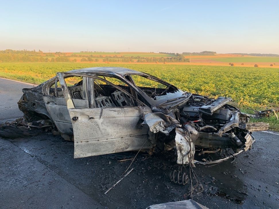 Die Polizei geht nach einer ersten Einschätzung von folgenden Unfallhergang aus: Der Fahrer eines mit zwei Männern besetzten Pkw verlor im Bereich einer Kuppe - vermutlich in Folge zu hoher und nicht angepasster Geschwindigkeit - die Kontrolle über sein Fahrzeug. Das Auto kam kurz auf den Grünstreifen und überschlug sich danach mehrfach. Im Anschluss ging es in Flammen auf. Glücklicherweise konnten sich die beiden Insassen selbst aus dem Fahrzeug befreien. Im Zuge der Unfallaufnahme wurde festgestellt, dass der Fahrer unter Alkoholeinfluss stand. Ein Alcotest ergab einen Wert von über einem Promille. Fahrer und der Beifahrer wurden vom Rettungsdienst in umliegende Krankenhäuser eingeliefert. Sie sind vermutlich nicht schwerer verletzt. Dem Fahrer wurde eine Blutprobe entnommen. Sein Führerschein wurde zur vorläufigen Entziehung einbehalten. Der Sachschaden wird auf rund 10.000 Euro geschätzt. Im Einsatz waren die Freiwillige Feuerwehr Münstermaifeld, der Rettungsdienst, sowie Beamte der Polizeiinspektion Mayen. Foto: Polizei