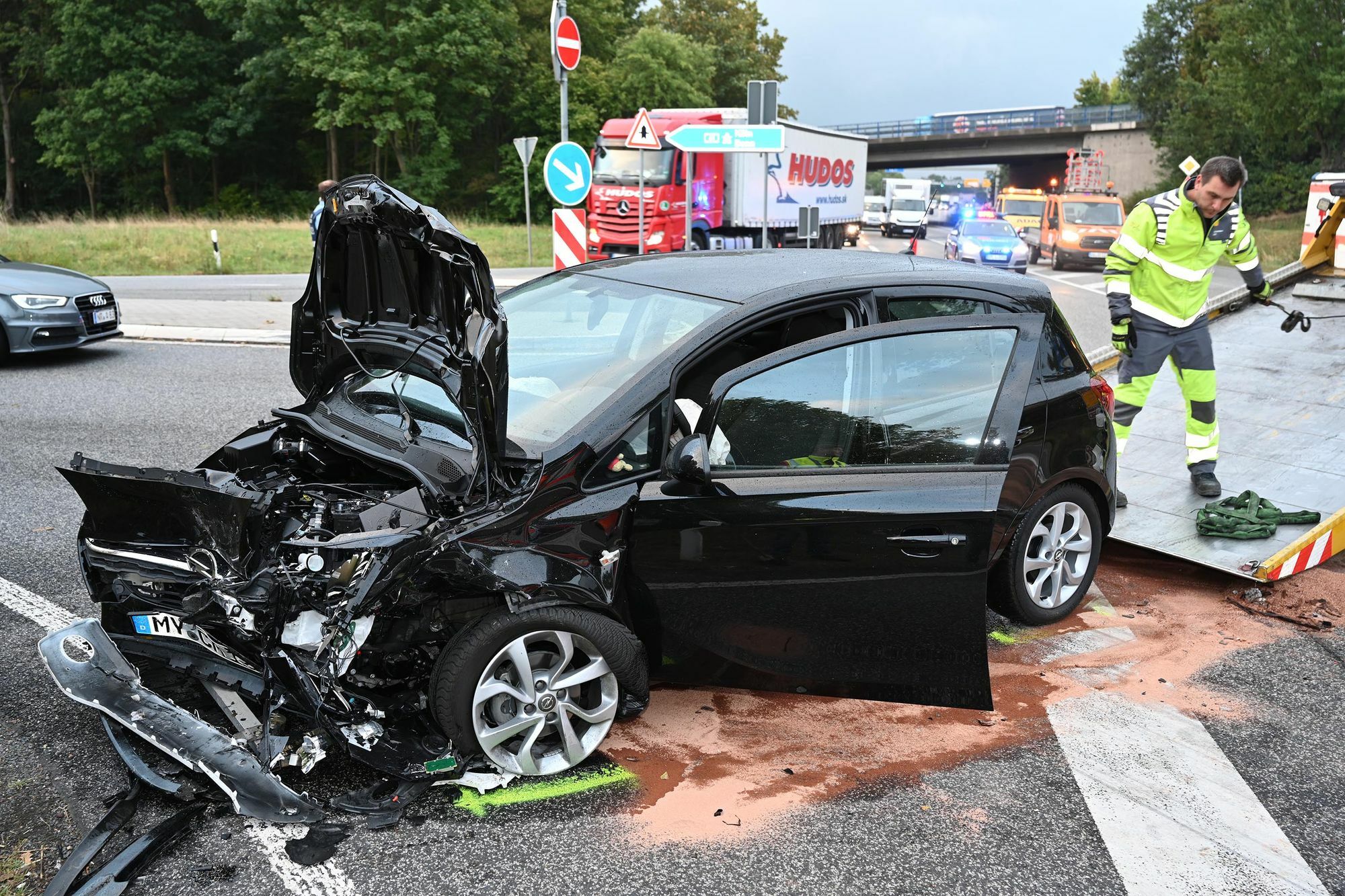 Es kam zum Zusammenstoß beider Fahrzeuge. Die Fahrer wurden leicht verletzt. An den Unfallfahrzeugen entstand Totalschaden. Die Anschlussstelle Mendig, Auffahrt in Richtung Köln, musste während der Unfallaufnahme beziehungsweise der Bergung der Fahrzeuge zeitweise gesperrt werden. Es entstand ein Sachschaden von rund 20.000 Euro. Die Fahrbahn konnte um 07.40 Uhr wieder freigegeben werden. Foto: Walz