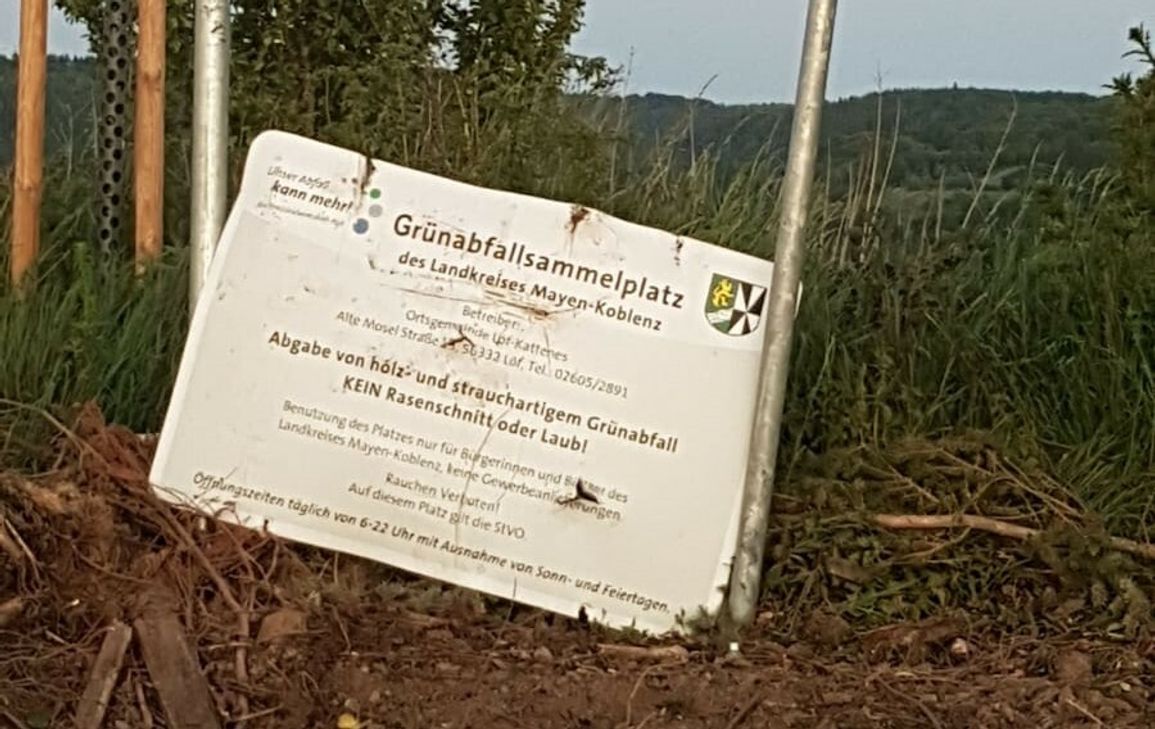Am Grünabfallsammelplatz der Ortsgemeinde Löf ist das Hinweisschild aus der Verankerung gerissen worden.