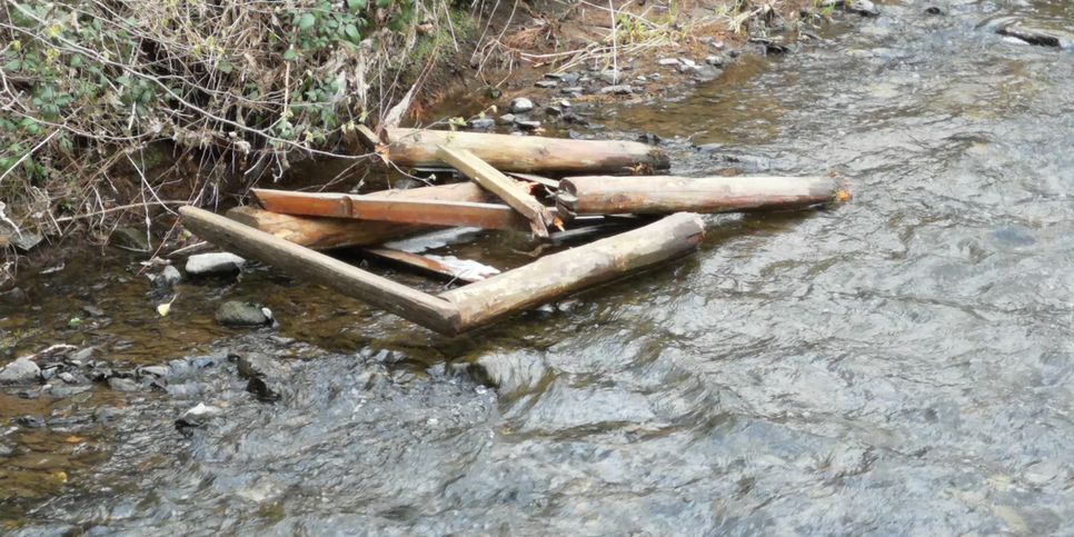 Die abgerissenen Holzteile wurden von den Tätern in die Nette geworfen. Es ist Strafanzeige bei der Polizei in Mayen erstattet worden, so der Trimbser Ortsbürgermeister Peter Schmitt.  Sachdienliche Hinweise an die Polizei in Mayen unter: 0 26 51 / 80 10. Foto: Ortsgemeinde Trimbs