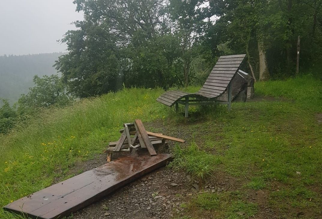 Zwischen Freitagnachmittag, 24. Mai, und Samstagmittag, 25. Mai, ist es im Mayener Stadtwald sowohl an der Eiterbach-Weiher-Hütte als auch an der Luisenplatz-Hütte zu mutwilligen Zerstörungen gekommen.