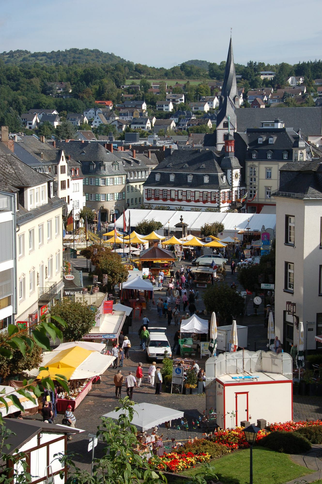 Im Anschluss den Kirchbesuch zieht man gemeinsam durch die Innenstadt zum Marktplatz. Es folgt der Frühschoppen des Stein- und Burgfestes im Festzelt. Das Frühschoppenkonzert der Musikkapelle der Freiwilligen Feuerwehr Mayen beginnt um 11.30 Uhr. Ab 13 Uhr öffnen die Mayener Geschäfte ihre Pforten und laden zum verkaufsoffenen Sonntag ein. Ob die neue Herbstmode, Schmuck, Bücher oder Parfüm - in den zalreichen Fachgeschäften findet jeder etwas. Bis 18 Uhr hat man Zeit, das Stein- und Burgfest mit einem gemütlichen Bummel durch die Läden zu kombinieren. Natürlich warten auf die Besucher noch viele weitere Angebote und Attraktionen in der Mayener Innenstadt, mehr Infos zum gesamten Programm des Stein- und Burgfestes gibt es online unter www.mayen.de Foto: Stadt Mayen