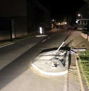 Diese Verkehrsinsel in Gappenach wurde von einem vermutlich weißen Pkw "abgeräumt".
