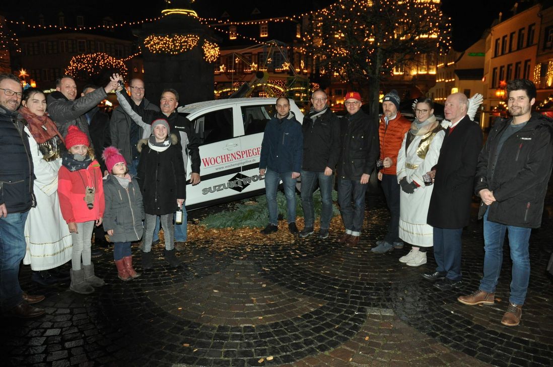 Es war das erste Los, dass die Engel bei der Schlussverlosung von "Einkaufen & Gewinnen" gezogen hatten, das Thomas Sträter-Null aus Dortmund ein neues Auto bescherte. Der Westfale urlaubt zurzeit mit seiner Familie in der Region und hatte am heutigen Sonntag den Mayener Weihnachtsmarkt besucht. "Wir waren gegen 16.30 Uhr hier und da hab' ich vier Lose gekauft. Da war sogar ein Sofortgewinn dabei", lachte der 44-Jährige, der etwas mehr als zwei Stunden später von Günter Wölm vom gleichnamigen Autohaus den Schlüssel des niegelnagelneuen "Suzuki" überreicht bekam. "Das Auto wird meine Frau Tanja fahren", freute er sich über das vorgezogene Weihnachtsgeschenk, das vom Autohaus "Suzuki Wölm", vom WochenSpiegel und von der MY-Gemeinschaft zu gleichen Teilen gesponsert wurde. Folgende Gewinner wurden gezogen: - je einen "Lohner's" Christstollen: Edith Herrmann, Sina Kersten, Walter Klaes und Stefan Schmitt. - eine Backstubenführung bei den "Lohner's": Marliese Irmen. - ein 50 Euro Gutschein der Dr. Schlags Apotheken: Ursula Dahm. - ein 50 Euro Gutschein vom Modehaus Küster: Georg Weber. - je ein Gutschein der MY-Gemeinschaft in Höhe von 100 Euro: Christoph Sesterhenn, Elmar Weyers, Andreas Klar und Anneliese Mittler. - Candle-Light Dinner für zwei Personen von "Gourmet Wagner": Maria Zaganova Der Rechtsweg ist ausgeschlossen. Die Gewinne können ab Montag, 24. Dezember, 9 Uhr, in der WochenSpiegel Geschäftsstelle (Rosengasse, 56727 Mayen) gegen Vorlage des Personalausweises abgeholt werden. Foto: Pauly www.my-gemeinschaft.de