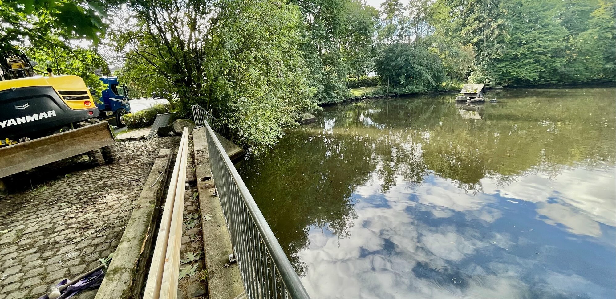 Am Obermendiger Entenweiher wird der Schieber instandgesetzt.