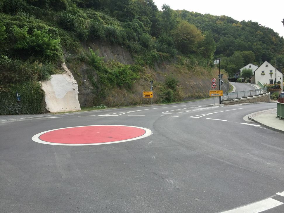 Im Ausbaubereich und insbesondere im Bereich "Bergweg" und "Rhein-Mosel-Straße" wurden zahlreiche Verbesserungen geschaffen. Erstmals wurde eine Einfahrt zur K 72 hergestellt, die von beiden Fahrtrichtungen der L 206 nutzbar ist. "Letztlich kann sich das Ergebnis, der sogenannte Mini-Kreisverkehrsplatz, sehen lassen. Der alte und unansehnliche Anblick dieses zentralen Punktes ist jetzt Vergangenheit und sollte auch möglichst schnell wieder in Vergessenheit geraten", so Ortsbürgermeister Jens Firmenich. Foto: Ortsgemeinde Brodenbach www.brodenbach-mosel.de