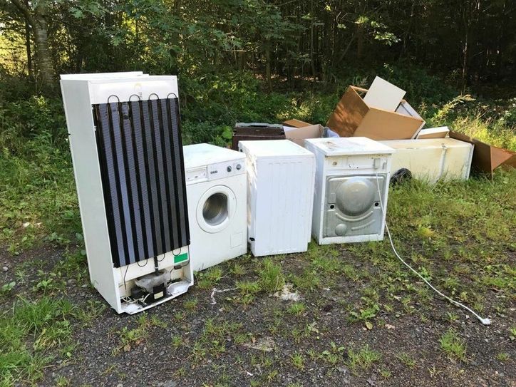 Unter anderem wurden dort mehrere Kühlgeräte, zwei Waschmaschinen, Reifen, große Teile einer Einbauküche und eine Tischtennisplatte abgelagert. Die Kriminalpolizei Mayen hat die Ermittlungen aufgenommen. Sie sucht nach Zeugen, die Hinweise auf den Verursacher der illegalen Ablagerung geben können. Hinweise nimmt die Kriminalinspektion Mayen unter der Rufnummer 0 26 51 /  80 10 entgegen. Foto: Polizei