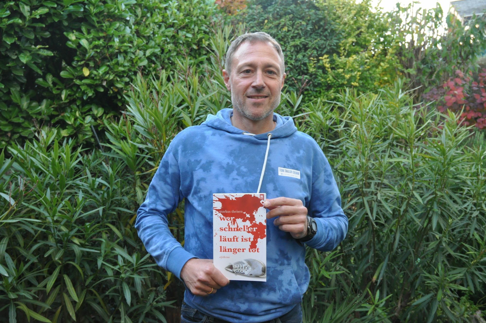 Wenn Markus Theisen von seinem neuen Krimi erzählt, merkt man schnell, dass es der vielleicht authentischste seiner Reihe mit Kommissar Fritz Weller ist. "Er ist wie ich ein begeisterter Läufer und hört gerne Queen", zieht er Parallelen. "Wer schneller läuft, ist länger tot" handelt vom Mord an einem bekannten Mayener Läufer, dessen Leiche im Nettetal aufgefunden wird. In seiner Brust steckt ein Wurfspeer, wie er in der Leichtathletik verwendet wird... Wer die Biographie von Markus Theisen kennt, der weiß, dass der Autor einen Handlungsrahmen gewählt hat, den er bestens kennt. Denn Theisen ist seit 1985 aktiver Läufer, der unter anderem Rheinlandmeister über 800 und 1.500 Meter war. "Laufen und schreiben passen bei mir gut zusammen", schmunzelt der Mendiger. Dabei sei er ja Mittelstreckler gewesen und ein Buch zu schreiben, sei eher wie ein 100 Kilometer-Lauf. Und einen solchen hat er ja im übertragenen Sinne bereits viermal erfolgreich absolviert. Die Resonanz auf seine ersten Kriminalromane gibt ihm jedenfalls recht. Dabei hat Theisen in seinem neuen Buch erstmals reale Handlungsorte genutzt. "Es hat einfach gepasst. Mit Mayen, der westfriesischen Insel Texel und der Provinz Zeeland sind es Orte oder Regionen, die ich selbst sehr gut kenne. Die Leserinnen und Leser können die dort beschriebenen Laufstrecken gerne nach laufen", führt der Krimiautor an, der neben einem Teil in der Gegenwart den Hauptteil im Jahr 1986 spielen lässt. "Laufen boomte damals so richtig", erinnert sich Theisen, der viel Lokalkolorit sowie Anekdoten einfließen lässt und das heißt auch, dass Mayener Platt "gesprochen wird". "Keine Angst, diese Sequenzen werden auch übersetzt", lacht er. Das passt gut zur Mixtur von Spannung und Humor, die die Leserinnen und Leser erwartet. Erstmals hat Theisen für dieses Buch mit dem "Eifeler Literaturverlag" zusammengearbeitet. Erhältlich ist es in allen Buchhandlungen und auch online. Mehr über Markus Theisen und seine bisher erschienen Krimis unter: www.das-syndikat.com Foto: Pauly