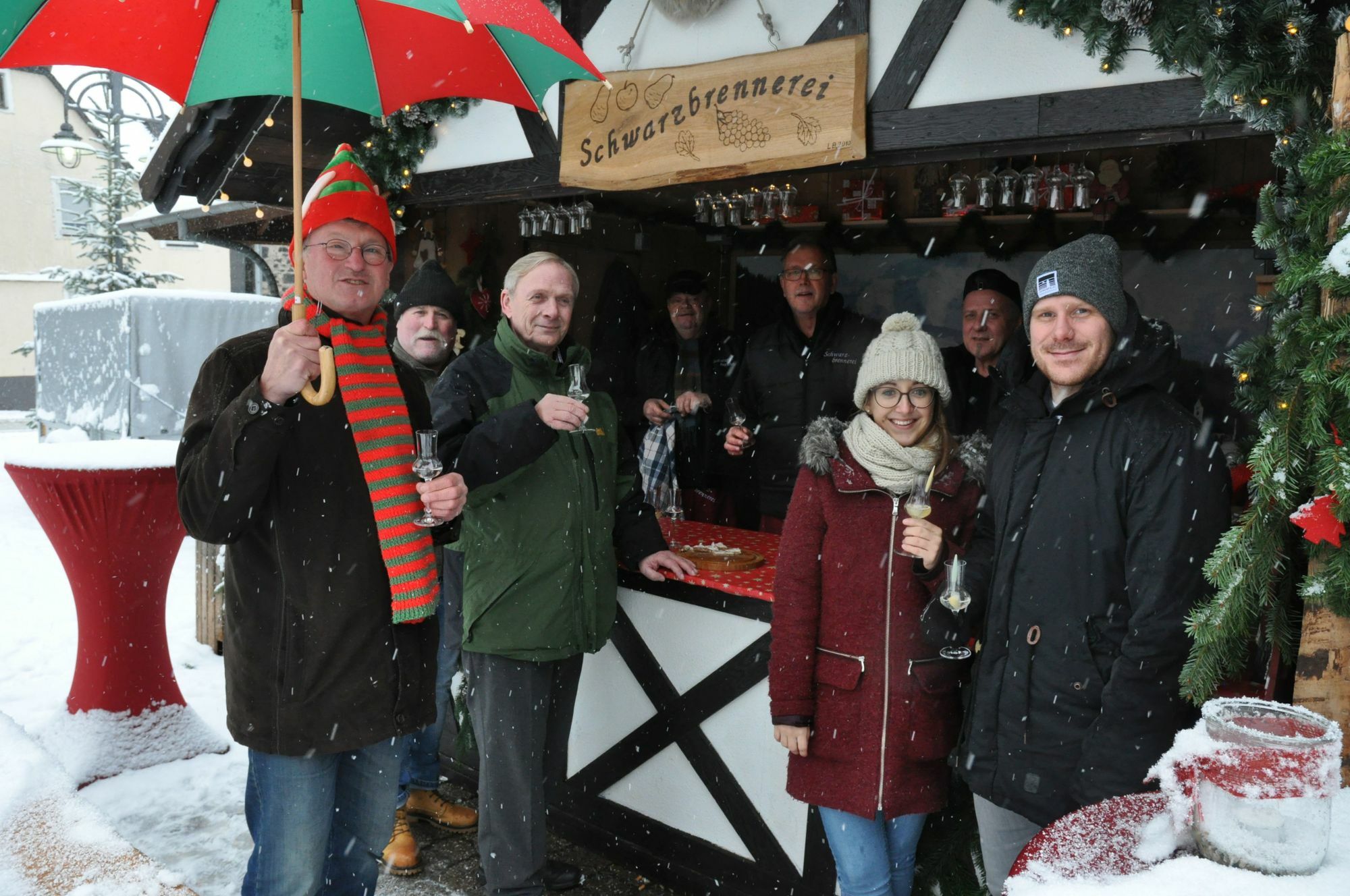 Der heftige Schneefall ließ am Sonntag einen Besuch auf dem Ochtendunger Weihnachtsmarkt in jedem Fall zu einem echten Wintererlebnis werden. Für einen »Troll« ist das auch überhaupt kein Problem. Zusammen mit wetterfesten Gleichgesinnten wurde der »Motor« mit hochprozentigem geschützt. Fazit: Wer wegen des Wetters auf einen Besuch verzichtete, hat etwas verpasst. Fotos: Pauly